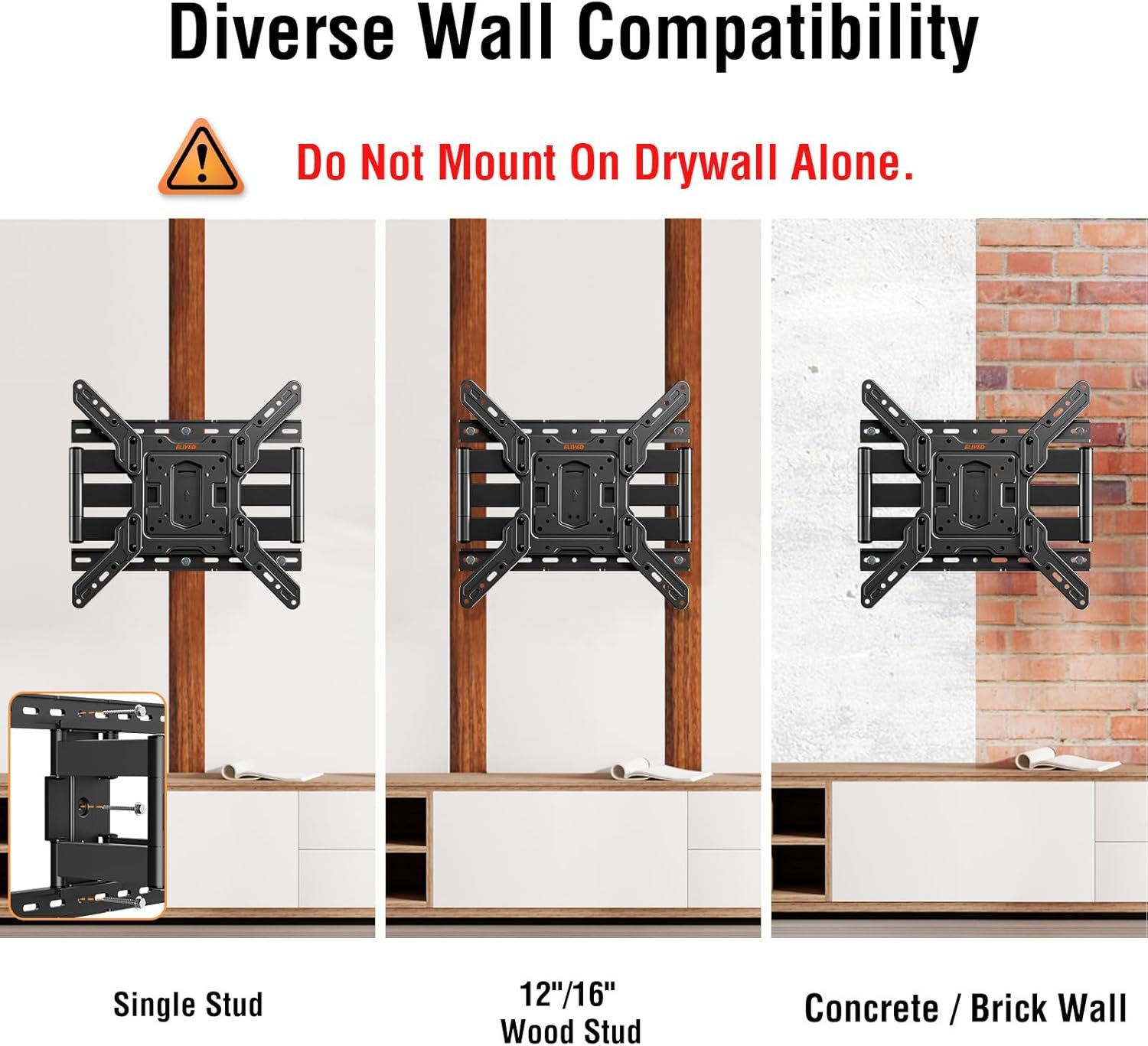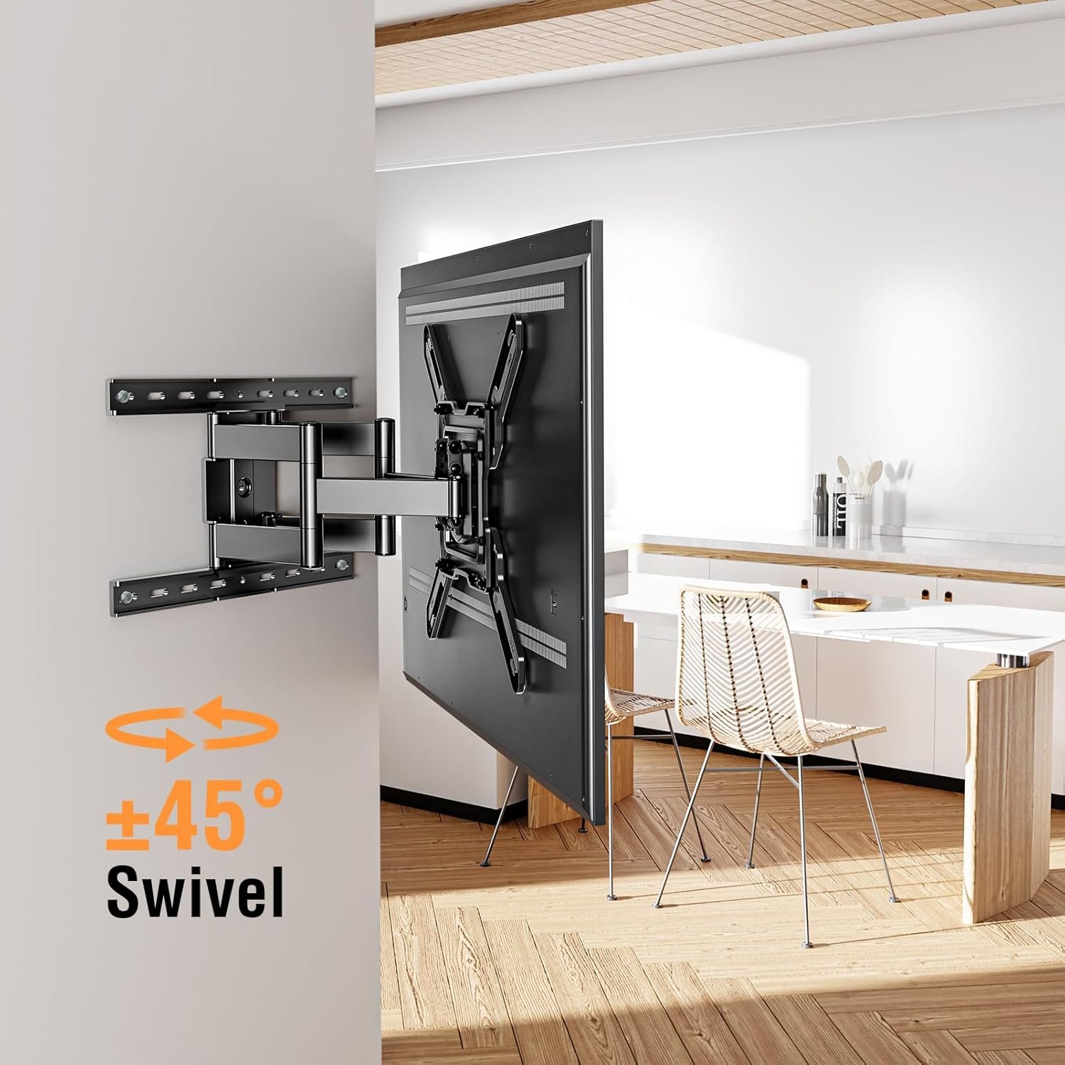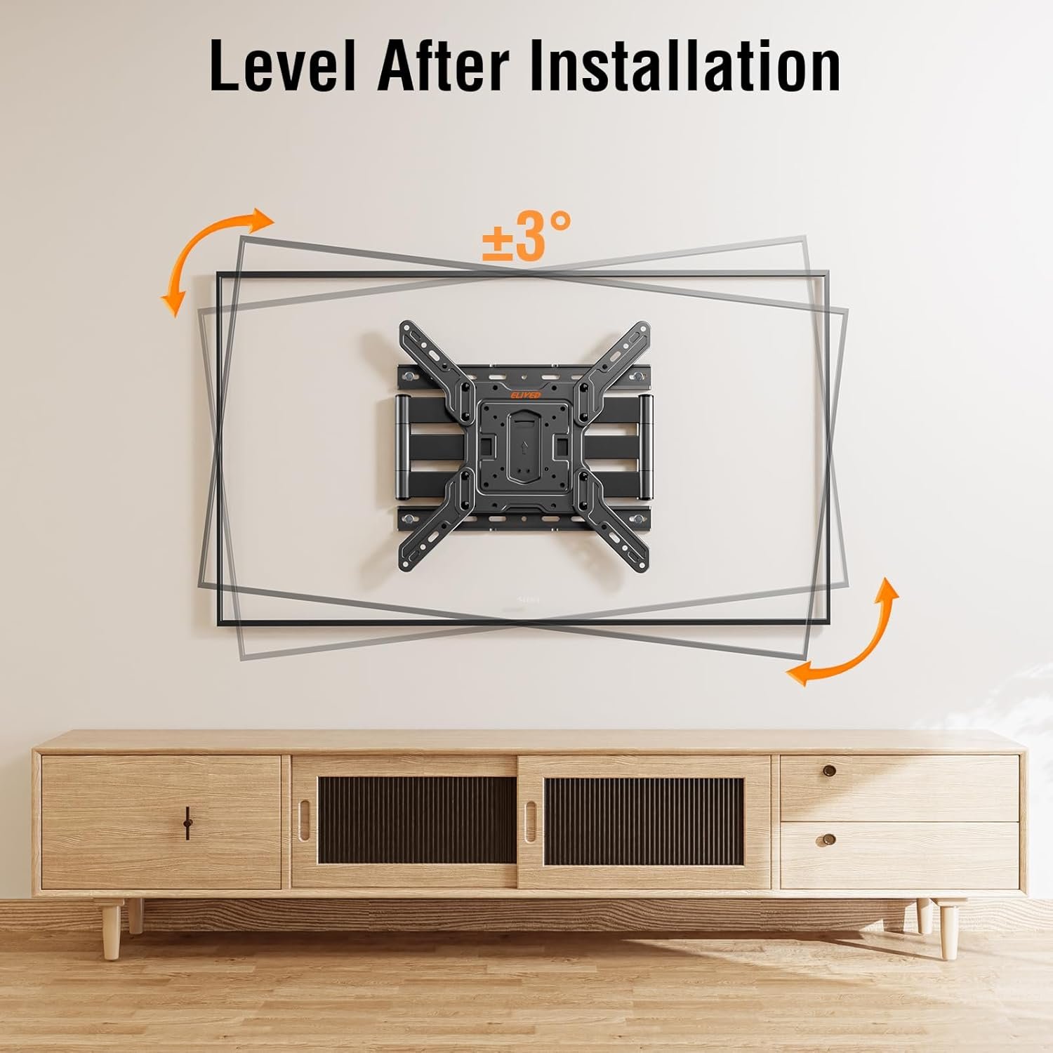 Optimal Viewing Angle – Articulating TV mount can swivel +/- 45° to cover more viewing position, tilt +5°/-10° to reduce glare, level the screen +/-3° after installation and extend up to 14″. Handy to place your TV at the best viewing angle.