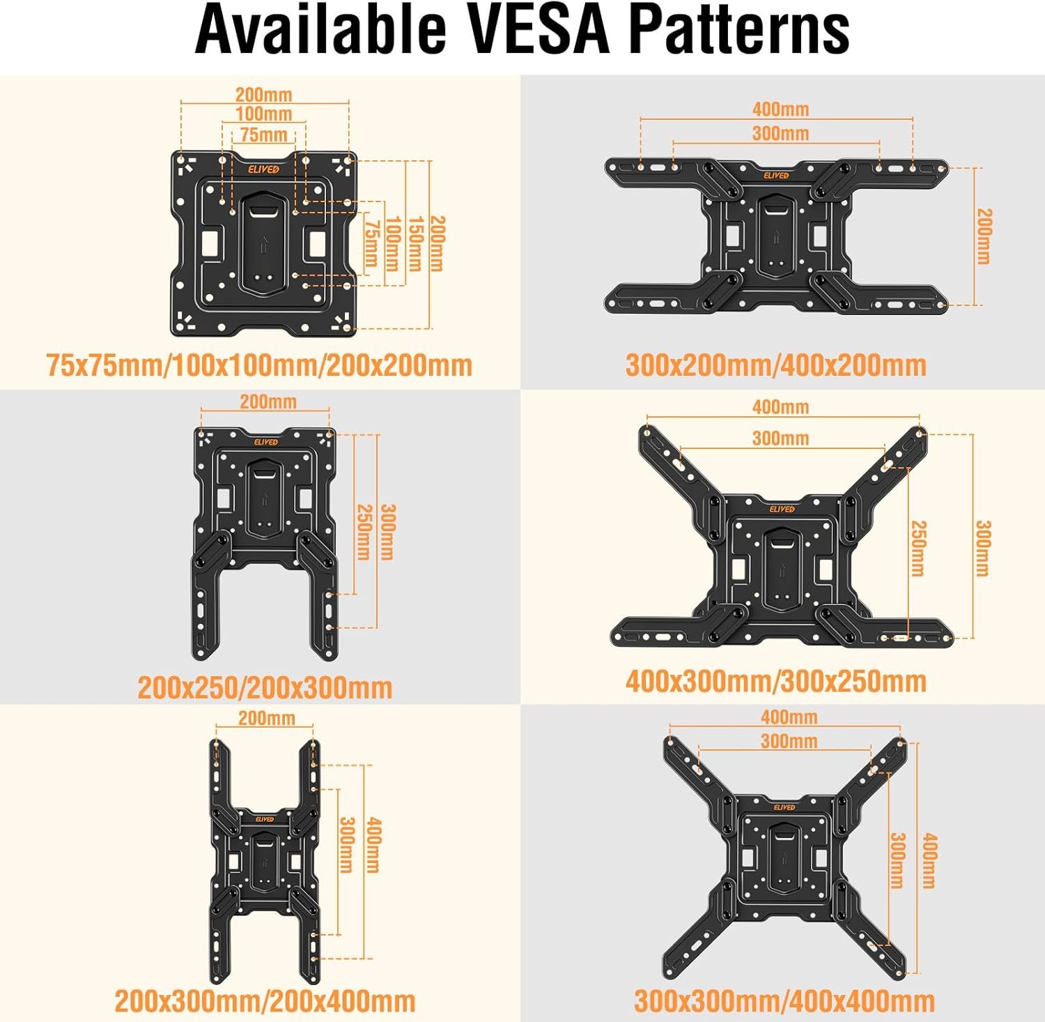 Universal TV Mount – Ultra slim wall TV mount fits most 26″-60″ LCD/LED/OLED TVs up to 88lbs, with VESA from 75x75mm to 400x400mm, fitting single stud, 12″ and 16″ wood studs spacing. Please check TV weight, size, VESA, and input access before purchase.