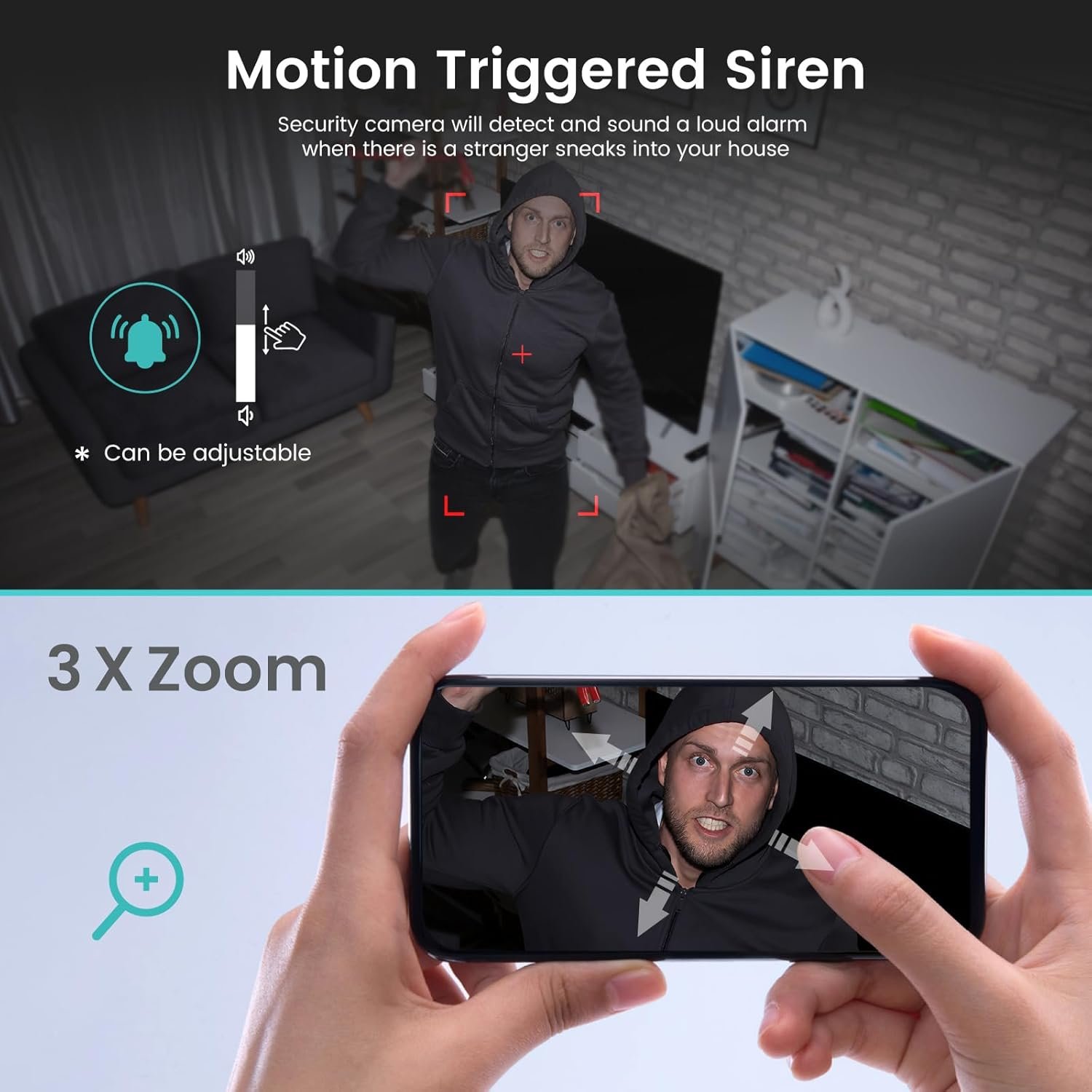 【2K Full HD and Advanced Night Vision】This product contains 2 cameras.Equipped with 2304 x 1296 Mega Pixels and a high-tech optic lens, the Litokam indoor camera can provide clearer picture quality and capture more detail. Litokam cameras for home security capture every detail, even in complete darkness, with 6 IR LEDs that provide up to 33ft of night vision. (WIRED INDOOR CAMERA: It’s a Corded Wi-Fi security camera and not a battery camera.)