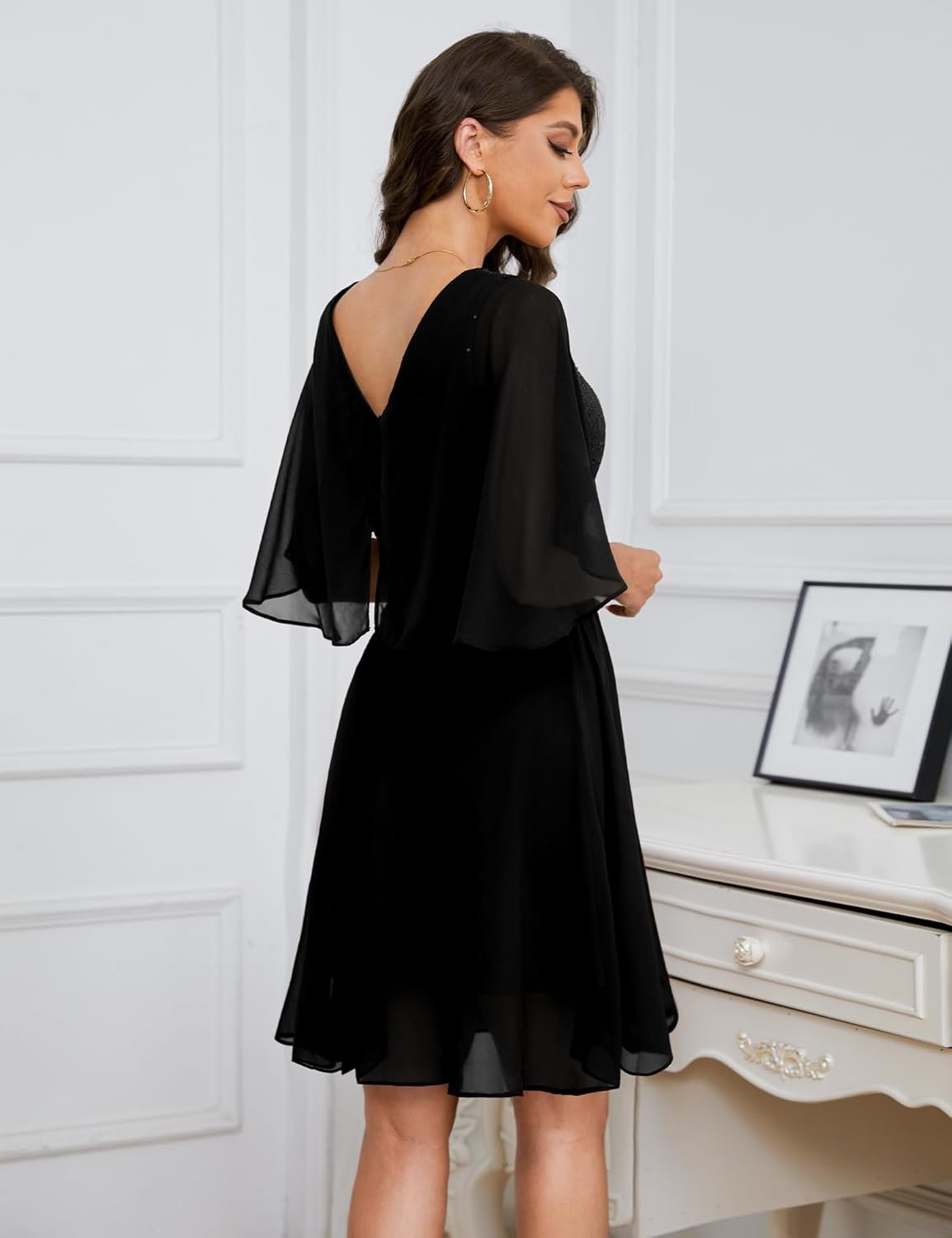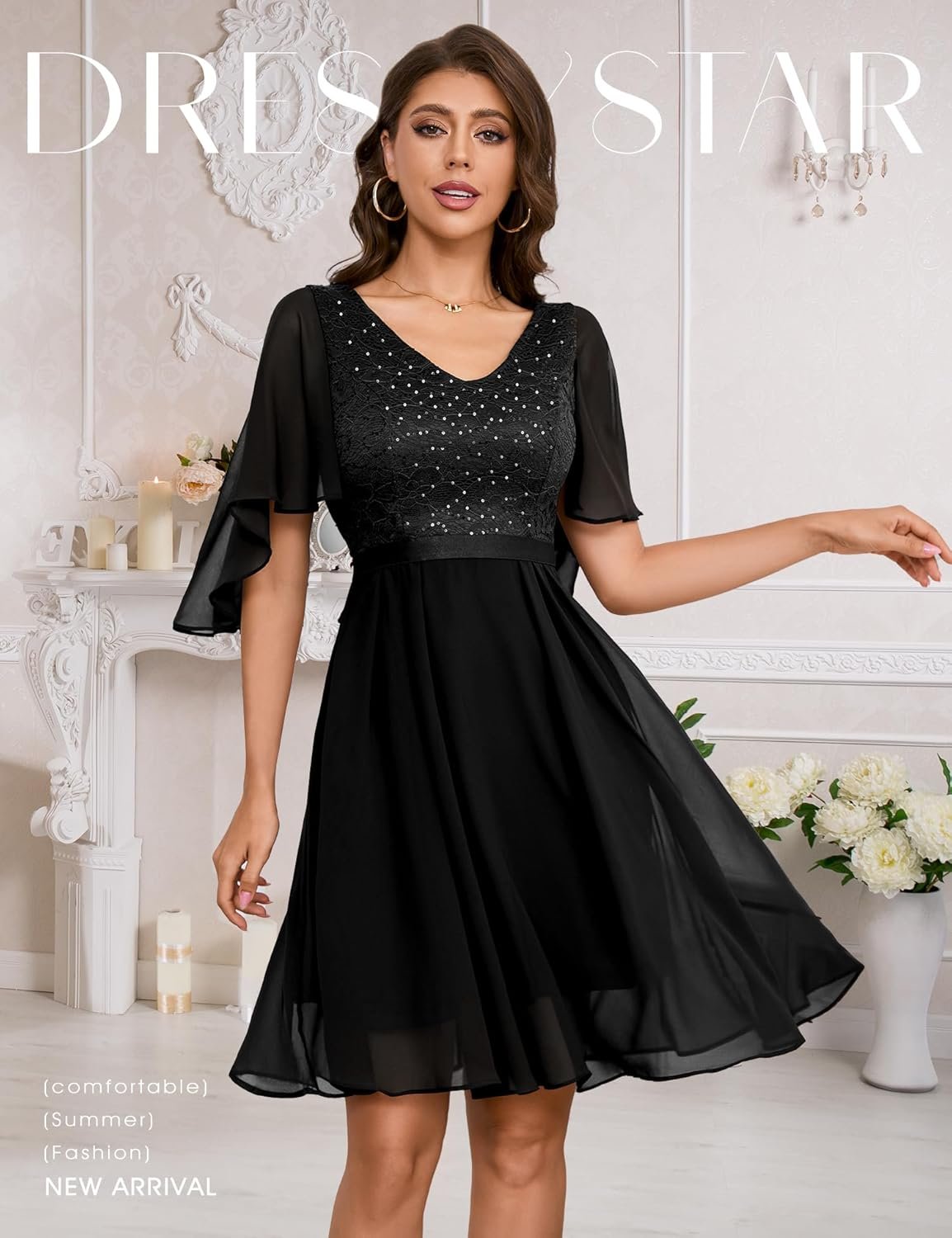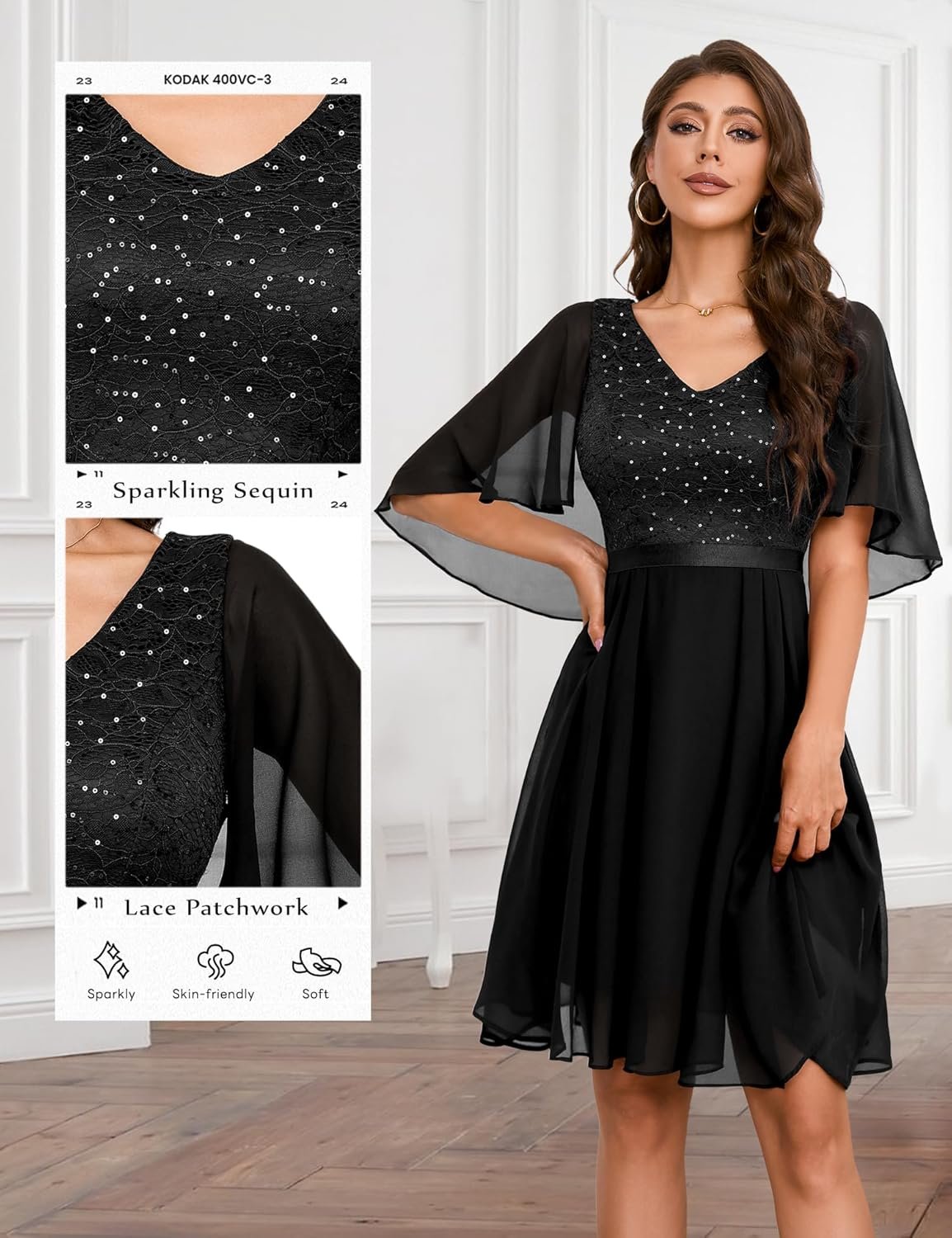 DRESSYSTAR Women Knee Length Cocktail Glitter Sequin Homecoming Grown Dress
