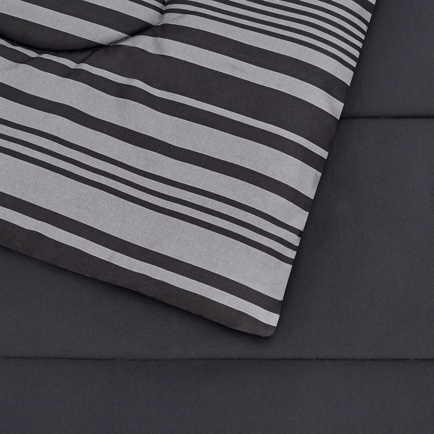 COMPLETE BEDDING SET: The 5-piece full/queen comforter set with sheets includes a comforter, flat sheet, fitted sheet, sham, and pillowcase, all in a stylish gray calvin stripe design
