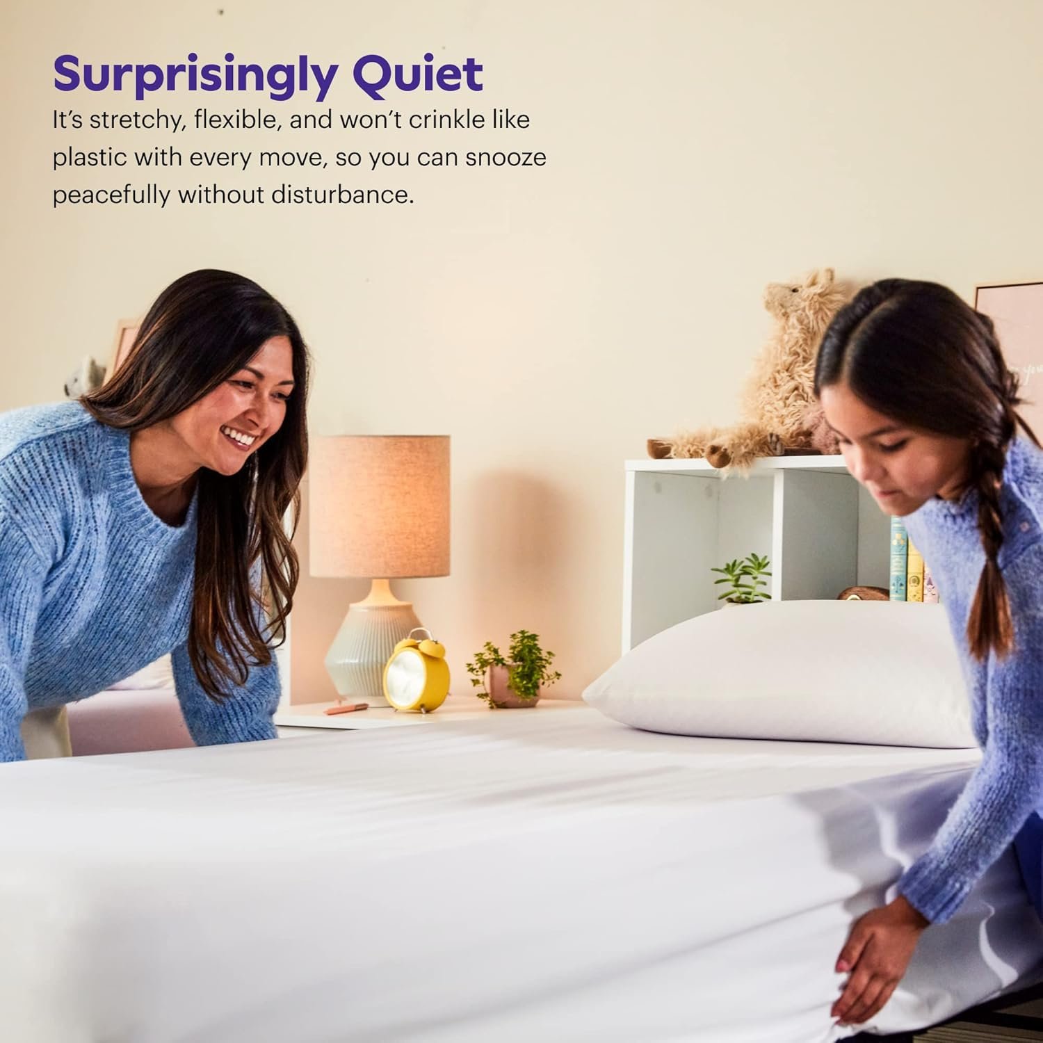SURPRISINGLY QUIET – It’s stretchy, flexible, and won’t crinkle like plastic with every move, so you can snooze peacefully without disturbance.
