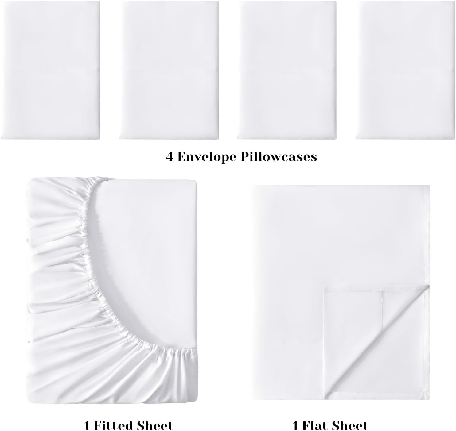 DEEP POCKETS: Fits mattresses up to 15″ deep with elastic around the fitted sheet. It is uniquely designed to easy fit and stay on bed tightly, and especially deeper in the corners, allowing it to stretch over a thick mattress to provide a secure fit without popping off while you sleep. Queen size 6 piece hotel luxury bed sheets set include – 1 Flat sheet (90″x102″), 1 Fitted sheet (60″x80″), 4 Pillowcases (20.5″x31″).