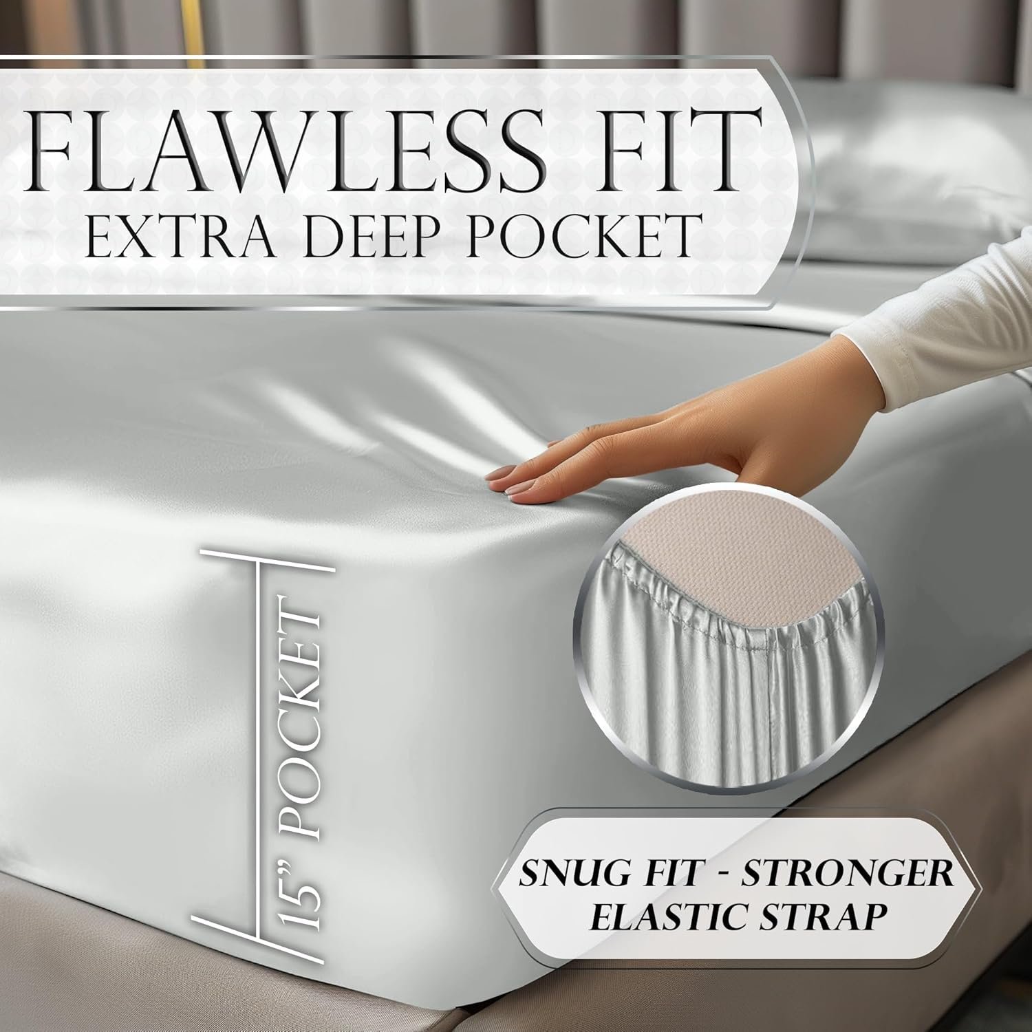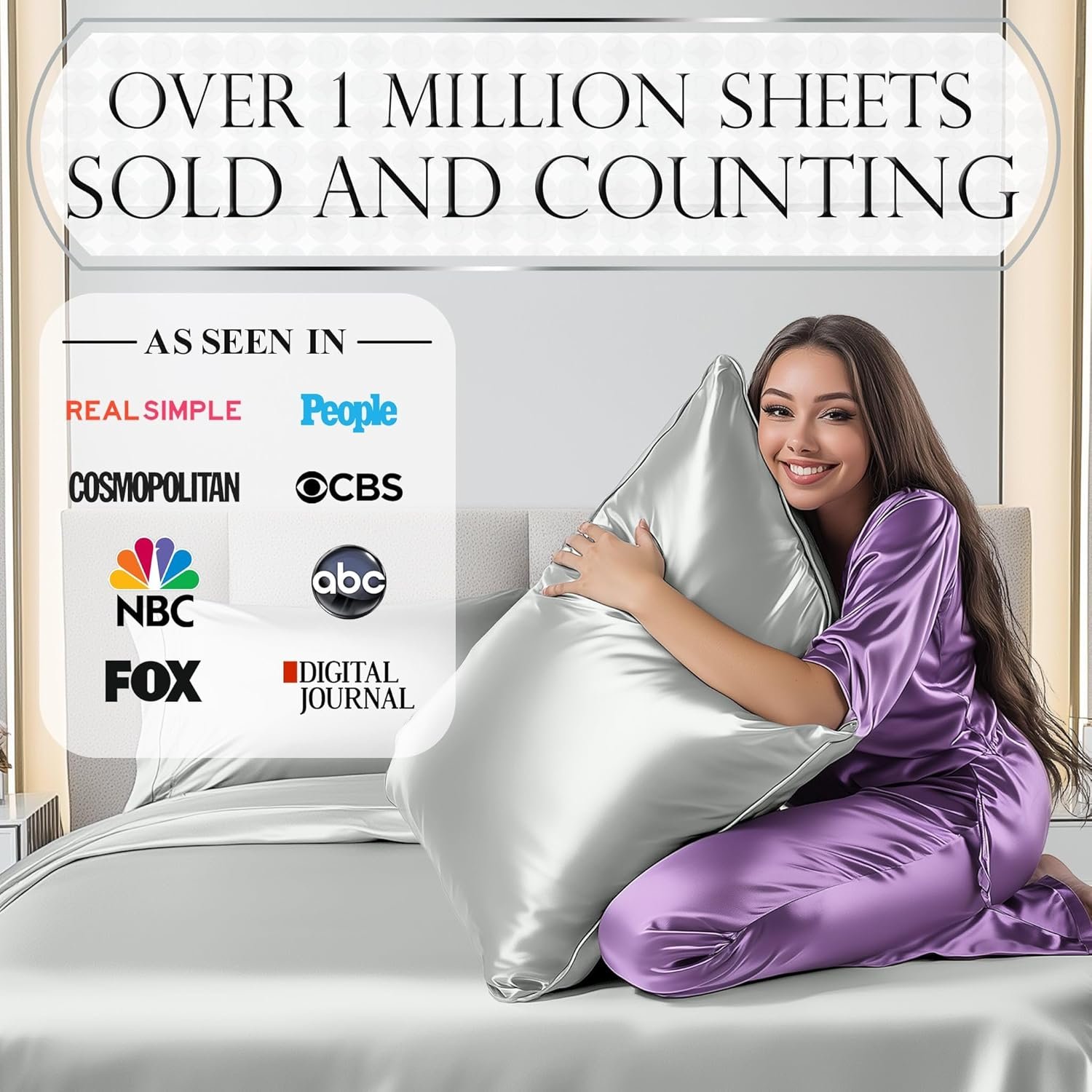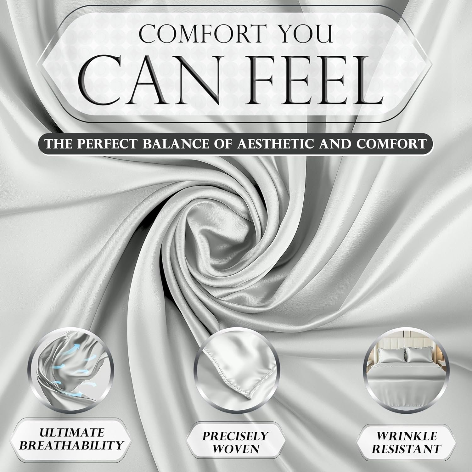 ENHANCED SLEEP SATISFACTION: Our satin sheets are crafted from silky-smooth fabric that enhances your sleep quality by reducing friction and keeping you cool. Experience the luxurious comfort that ensures you wake up refreshed and satisfied every morning