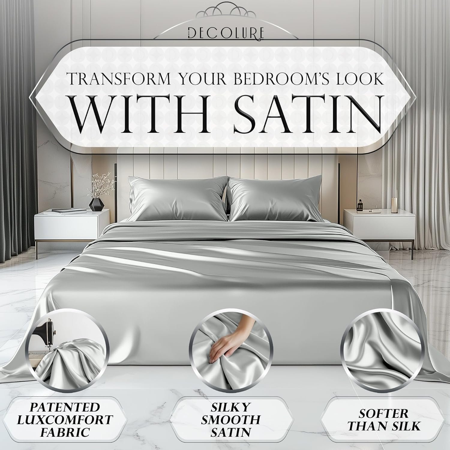 Heavenly Soft Texture to enjoy a 5 star luxury hotel experience with the Decolure premium satin sheets. Made from high-quality, breathable, and soft materials, our satin fitted sheet will not only remain cool and comfy all-night long, but also allow you to enjoy a soothing night’s sleep – every night. Replace your cotton or silk sheets with the Decolure satin sheet set today and indulge yourself in a rejuvenating, luxurious experience without the hefty price tag
