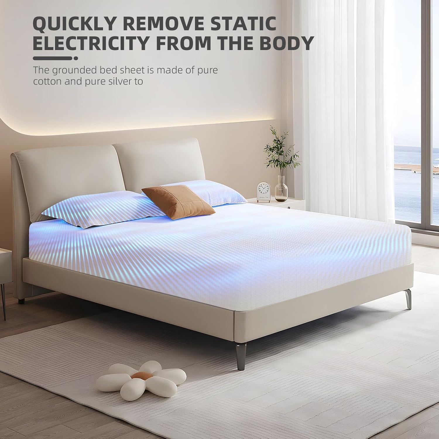 【Grounding technology】Bed Set – 4 Piece grounding bed sheet set made from naturally comfortable f 90% organic cotton and 10% silver fiber. This blend provides excellent conductivity, softness, comfort, and skin-friendliness so you can stay grounded all night long as you sleep. The grounded bedsheet set includes 2 Pillowcases, Fitted Sheet, Flat Sheet(ONLY THE FITTED SHEET IS GROUNDED)