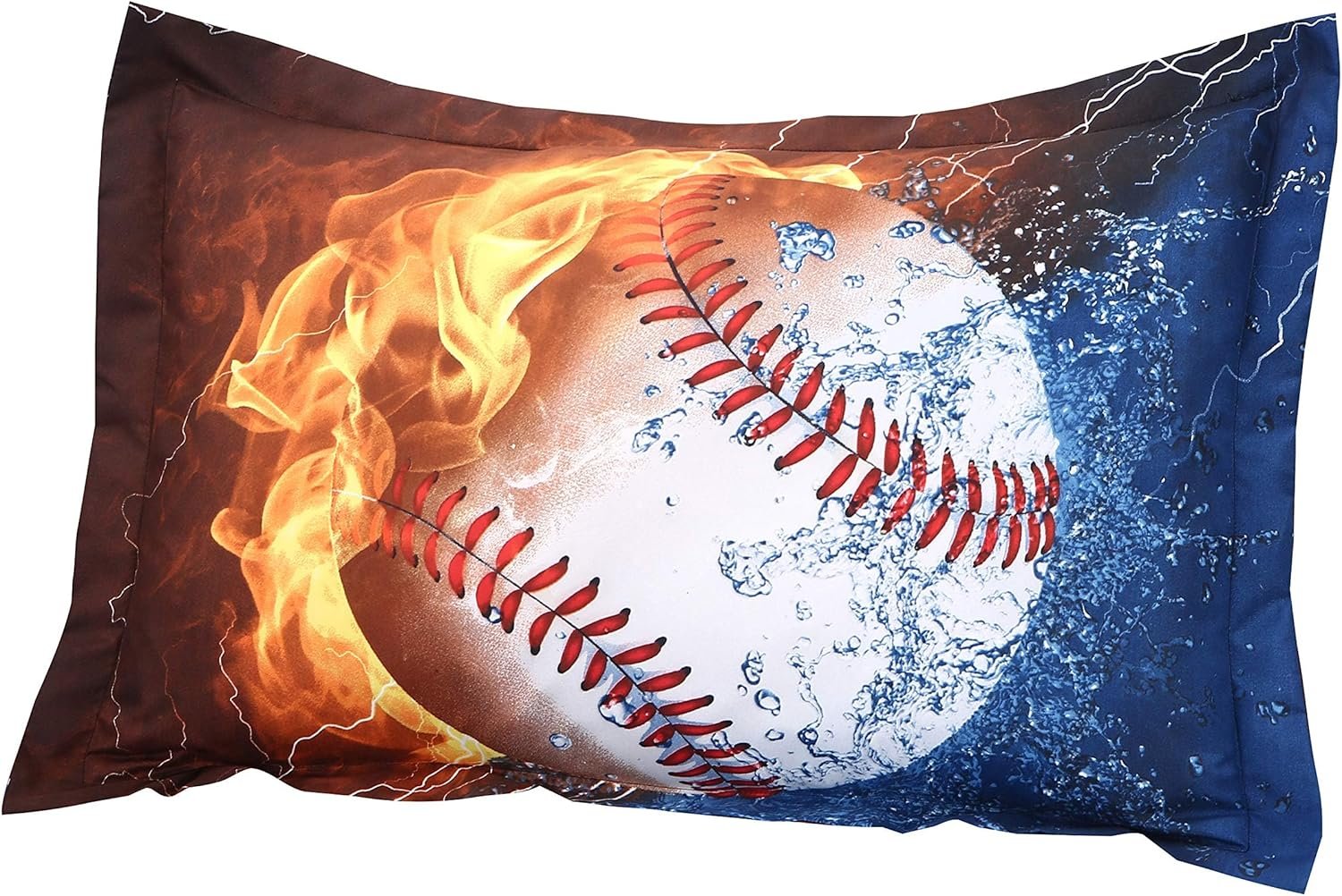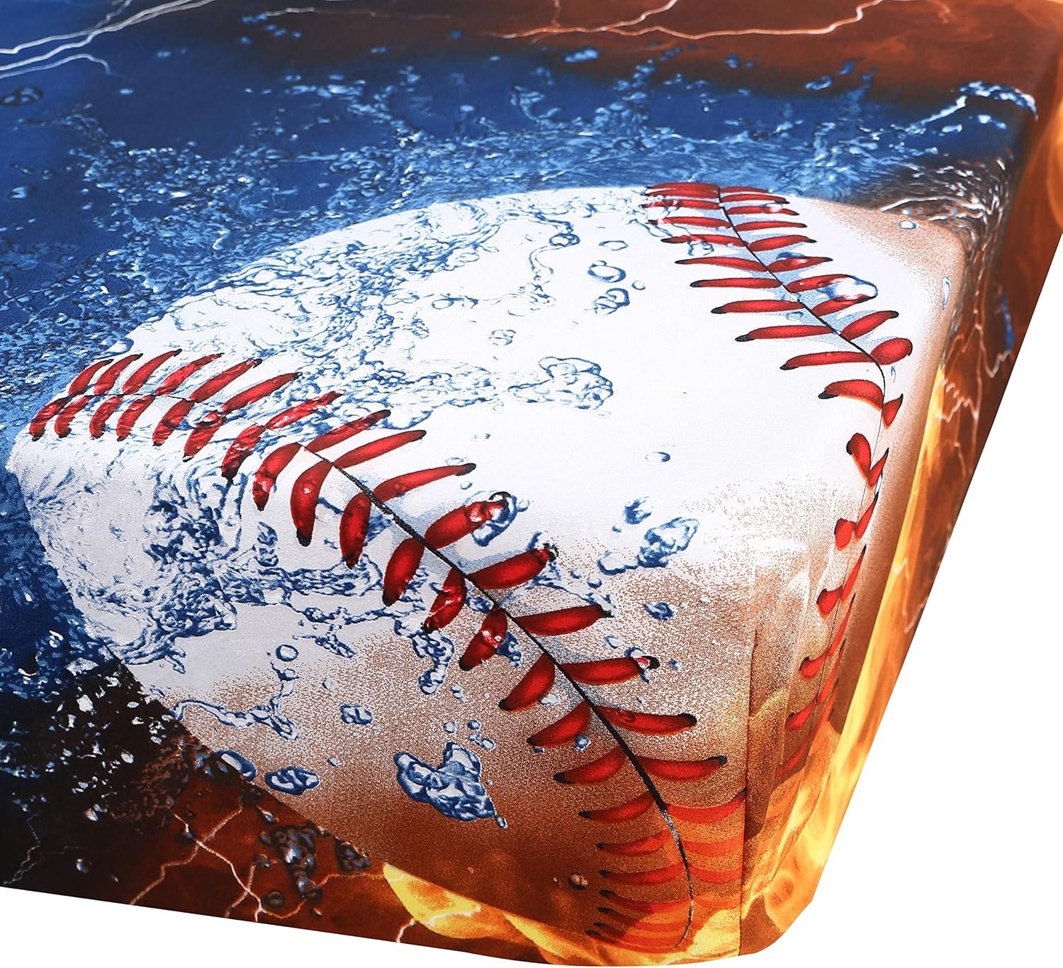 Features: Baseballs half-surrounded by fire and water with a blue background has been designed for it. Our sports sheets set collection will create a new sleeping experience, making you feeling refreshed.