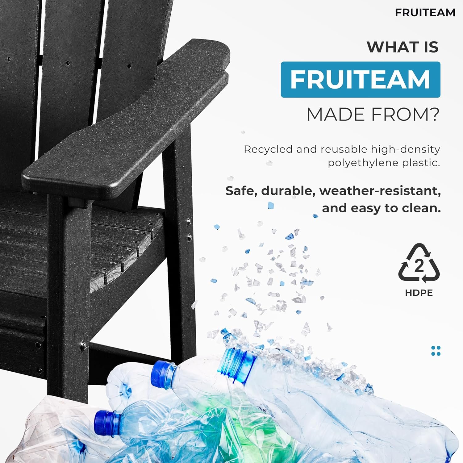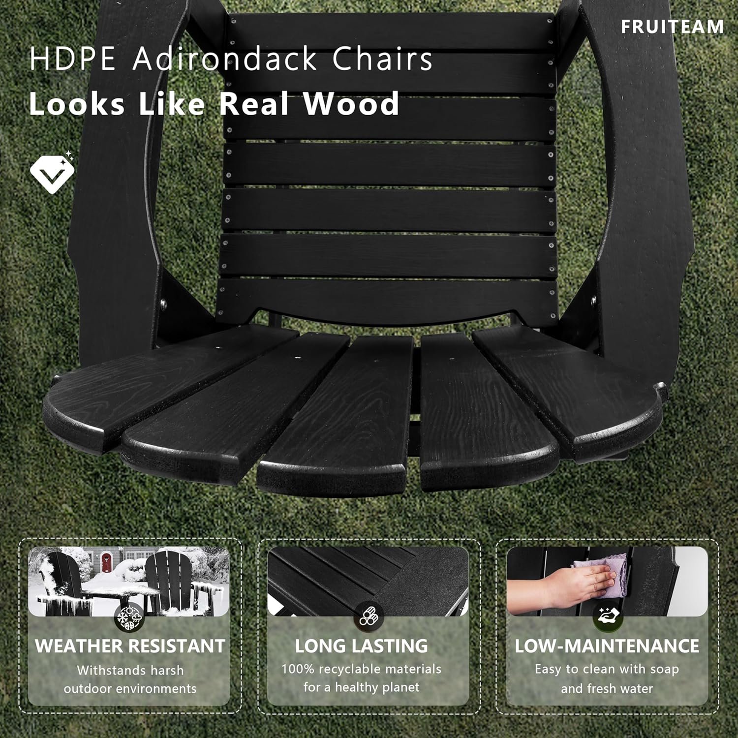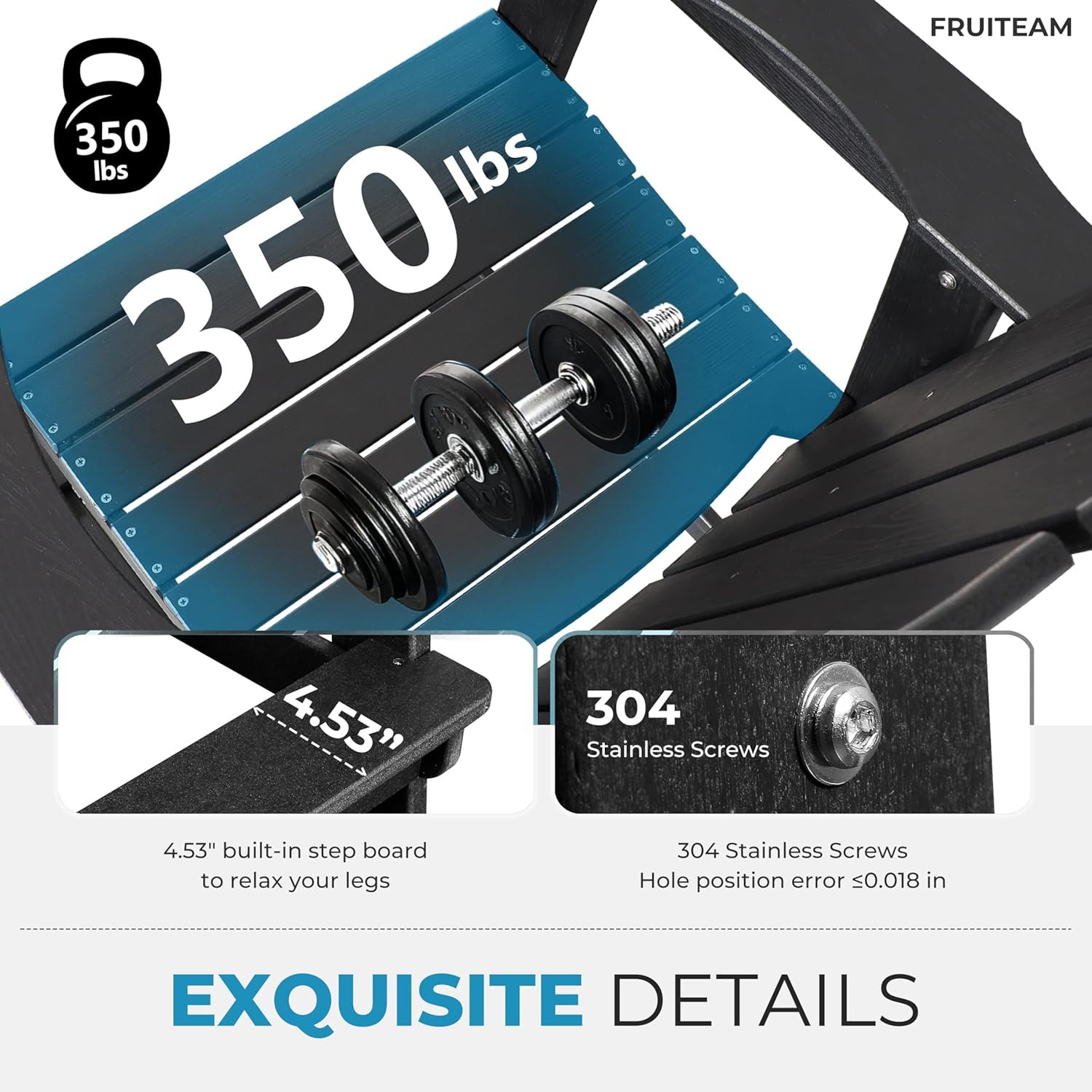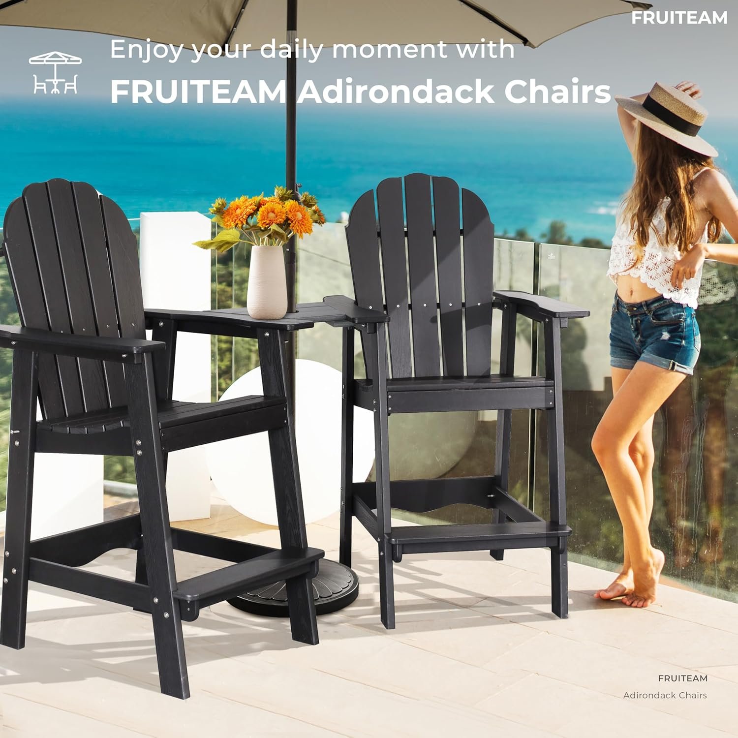 Premium Accessories: Featuring 304 stainless steel components, FRUITEAM bar height Adirondack chairs are rust-resistant and long-lasting, ensuring a secure connection to make it low-maintenace.