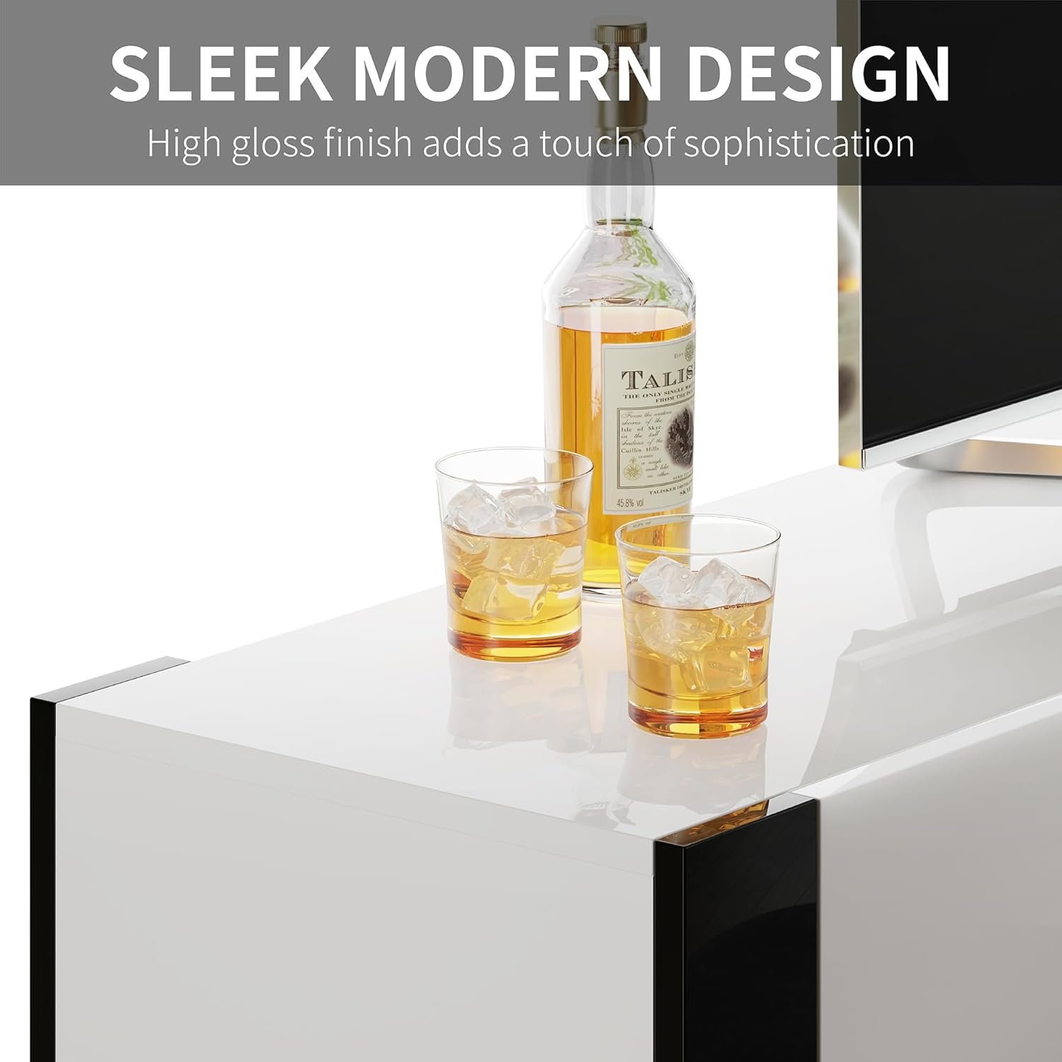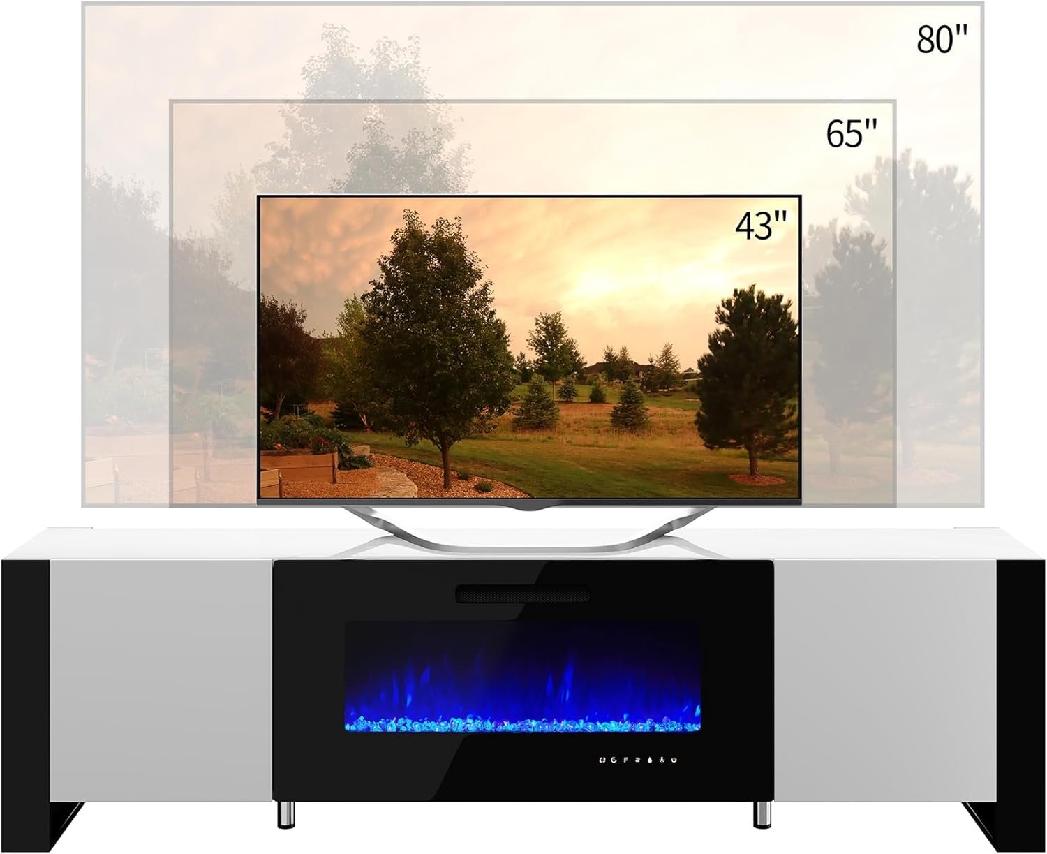 Customers find the TV stand’s high-gloss finish beautiful and appreciate its solid construction. The product is easy to assemble with clear instructions, and customers say it warms living rooms nicely with adjustable heat settings. They like the various fireplace features, perfect fit, and fantastic lighting options, including color-changing fireplace lights.