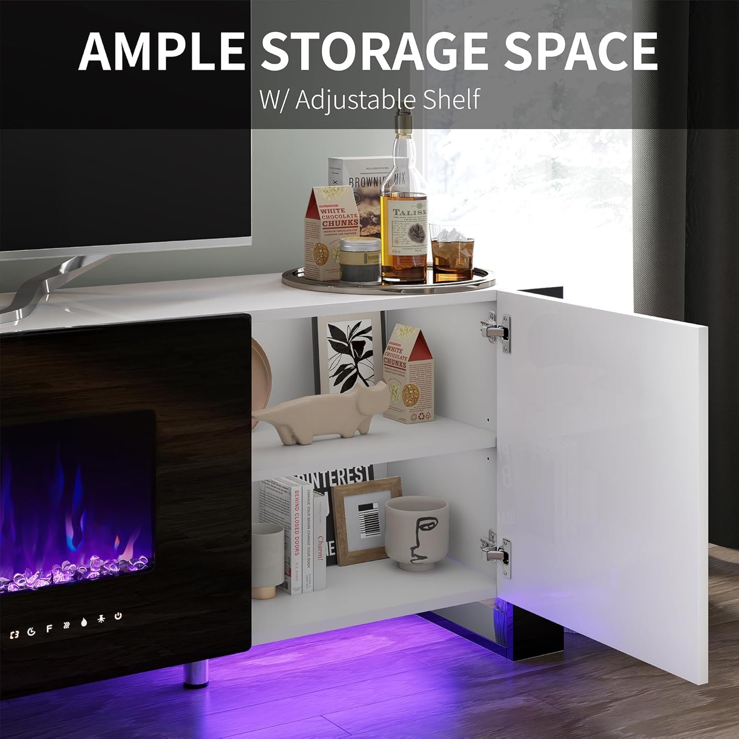 Realistic 36″ Fireplace: Transform your space with our 36-inch fireplace, complete with lifelike crystal stones. Choose from 8 different flame colors with fire gradient effect and adjust the brightness across 5 levels to set the perfect ambiance. The LED light strip under the led TV stand has 12 adjustable colors.