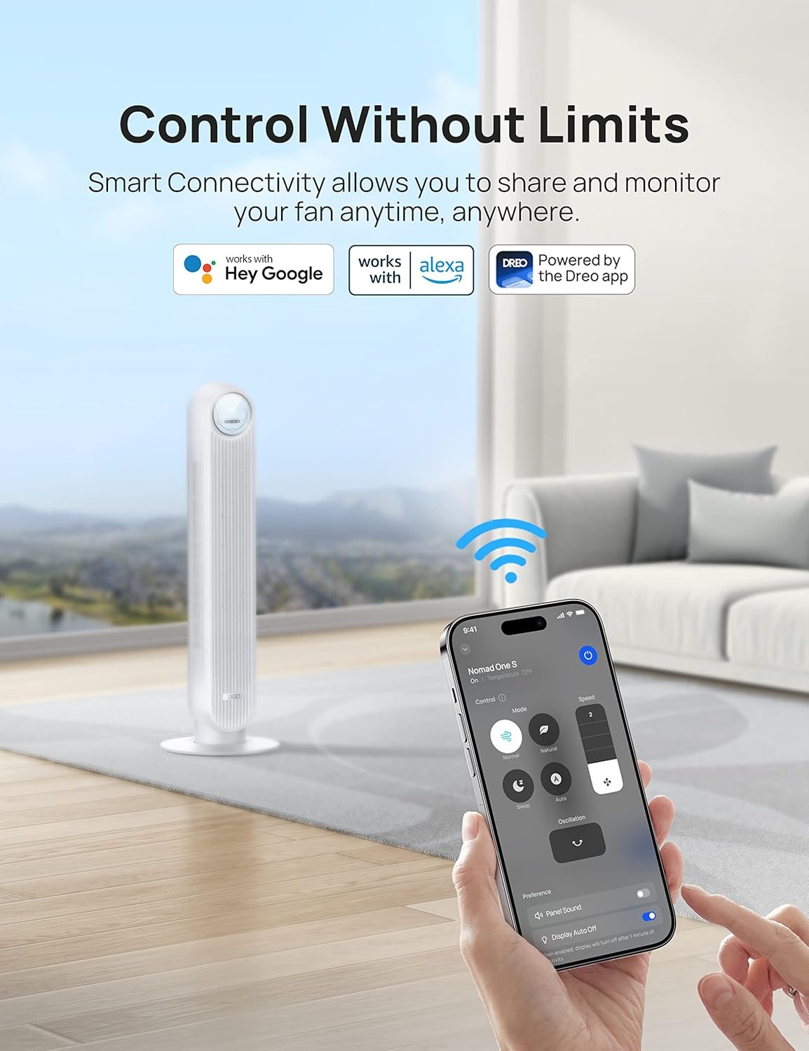 Customizable Comfort: Featured with 4 modes (Normal/Natural/Sleep/Auto) and 4 speeds from soothing-soft to storm-strong, you can easily customize your comfort at the touch of a button on the panel or the remote or your phone.