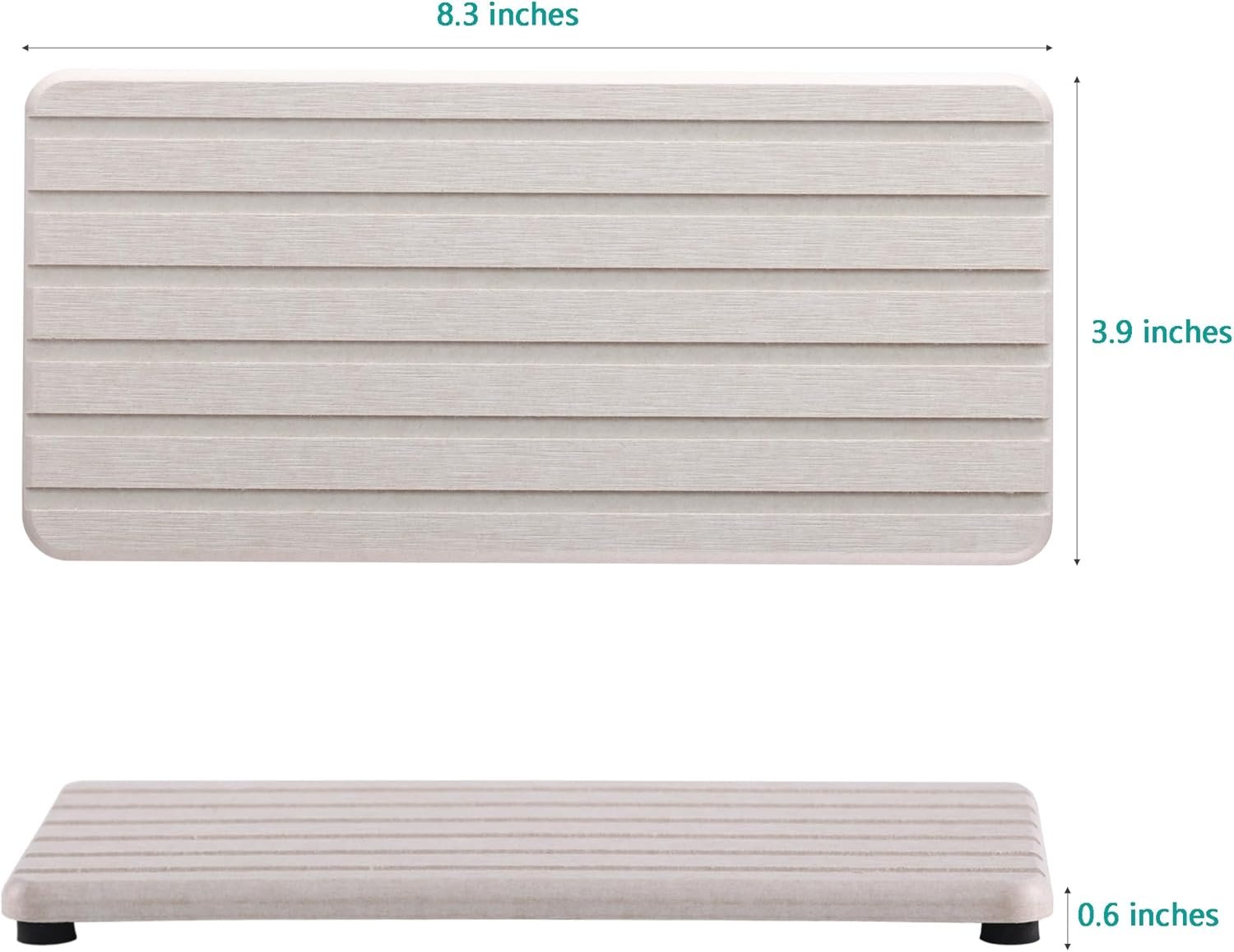Striped ditch design speeds up the absorption and volatilization of water, and has anti-skid effect.Silicone footpads boost the slip-resistance of coasters while keeping them out of the bathroom vanity. This design improves the contact surface between the diatomaceous earth coaster and the air, prevents moisture, and prolongs the service life of the product.