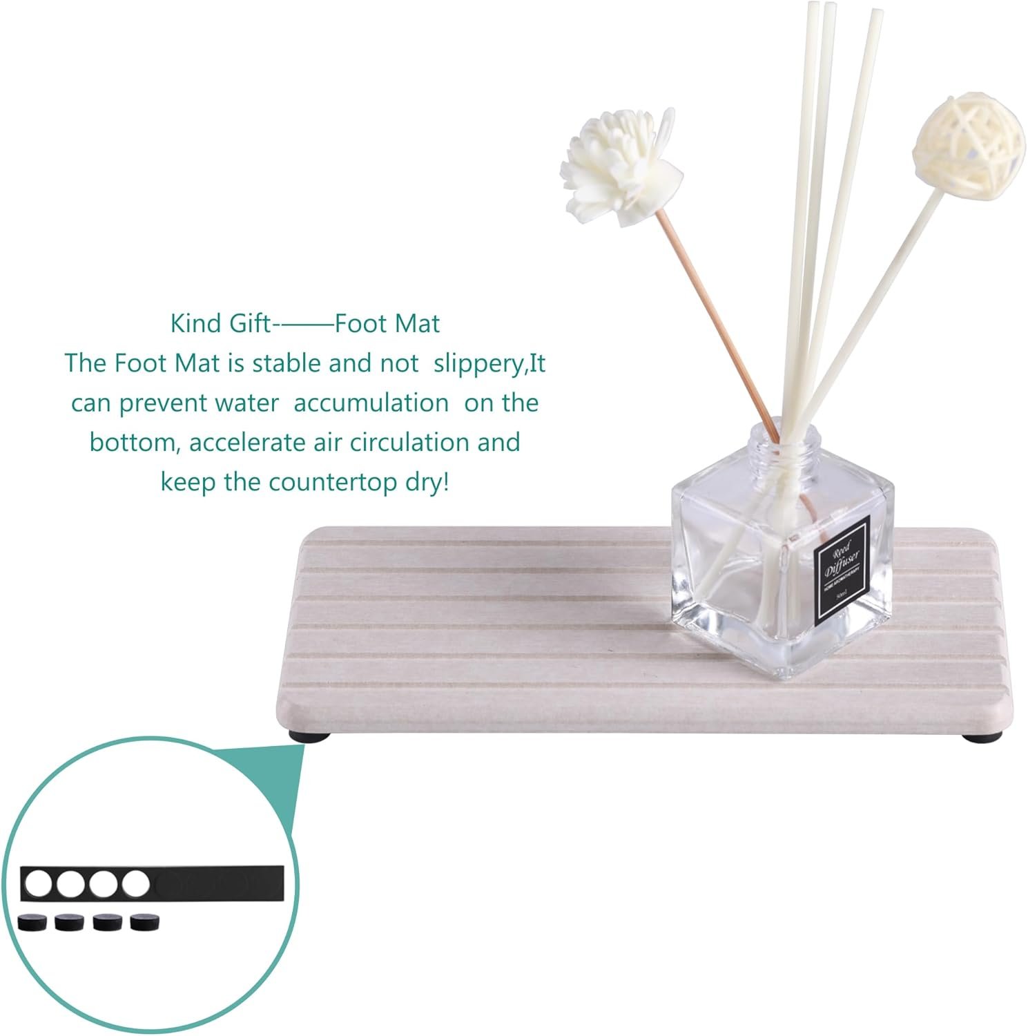 Made from natural Diatom mud and plant fiber, small holes within diatomite enable it have amazing water absorption. They could absorb water and gets dry in a few minutes. It makes the Bathroom Counter top more dry and tidy.