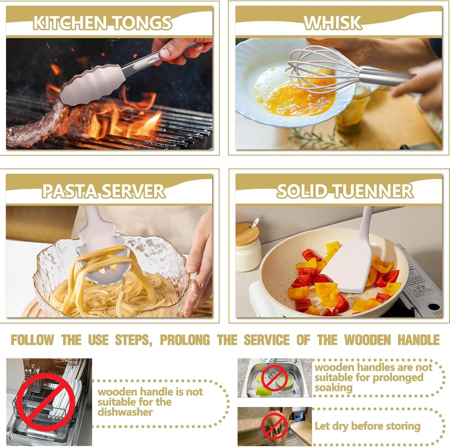 Each cooking utensil is made entirely of food-grade silicone, BPA-free and odorless
