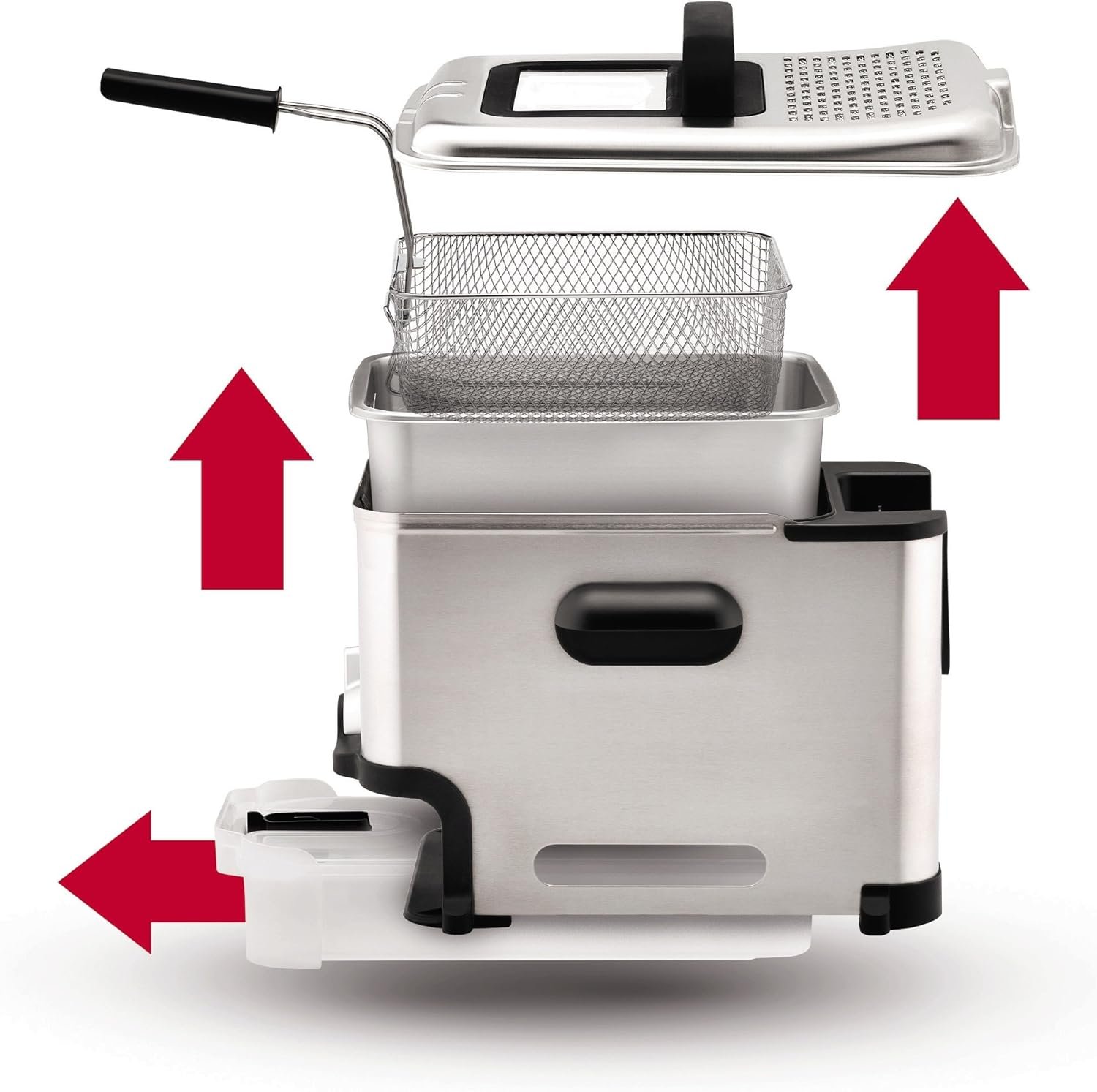 Oil Filtration System: Advanced technology automatically filters and stores oil in a sealed container, ensuring easy cleanup and cost savings through reusable oil. Enjoy hassle-free deep frying with this innovative feature.