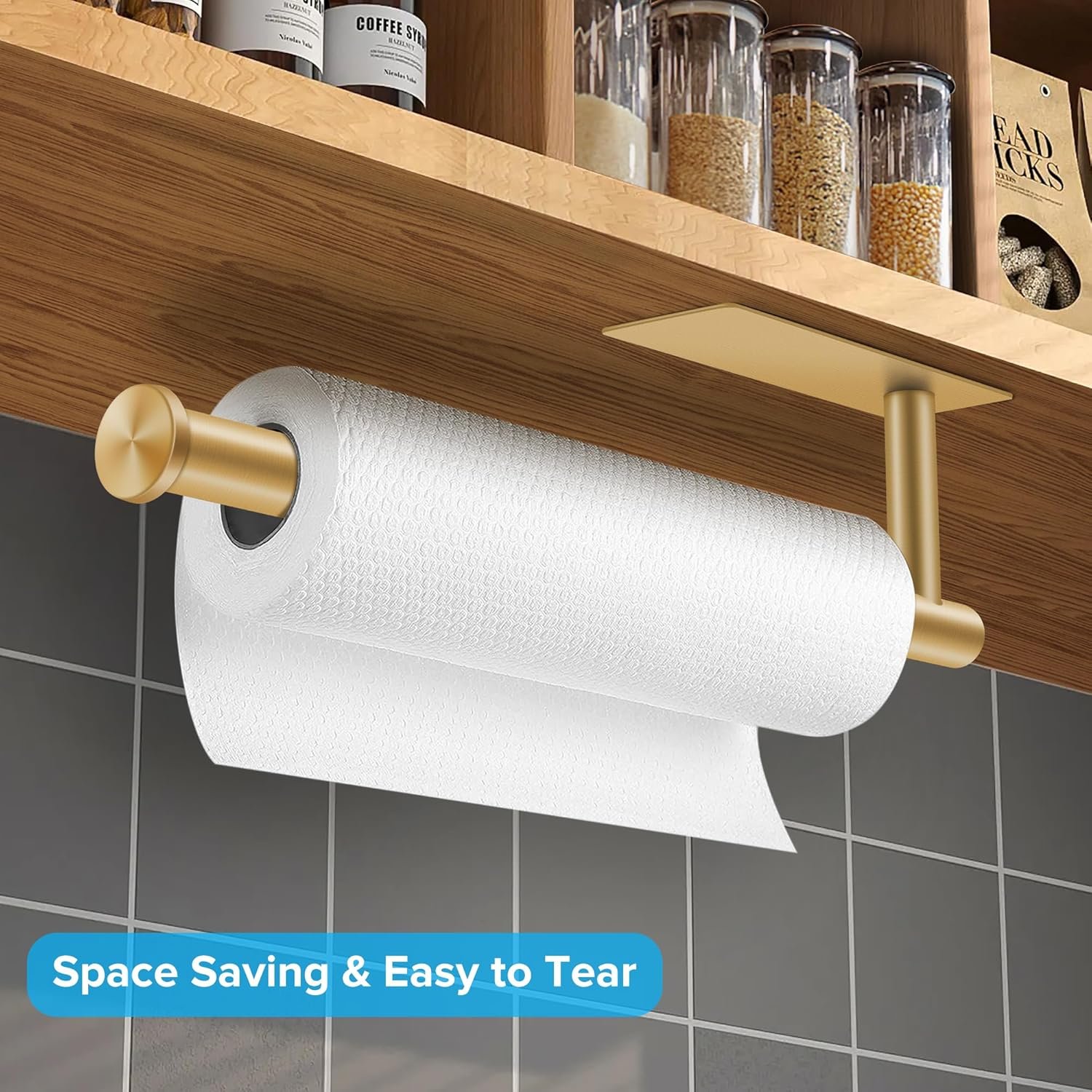 ![2nd Gen Paper Towel Holder Under Cabinet, [More Sturdy] Self Adhesive or Drilling Paper Towel Holder Wall Mount for Kitchen, RV, [Fit Mega Paper Towel Roll] SUS304 Stainless Steel(Pack of 1, Gold) 11 Brand Story](https://m.media-amazon.com/images/S/aplus-media-library-service-media/6051fc17-41b2-4496-a310-1a99d0e7f600.__CR0,0,1464,625_PT0_SX1464_V1___.jpg)