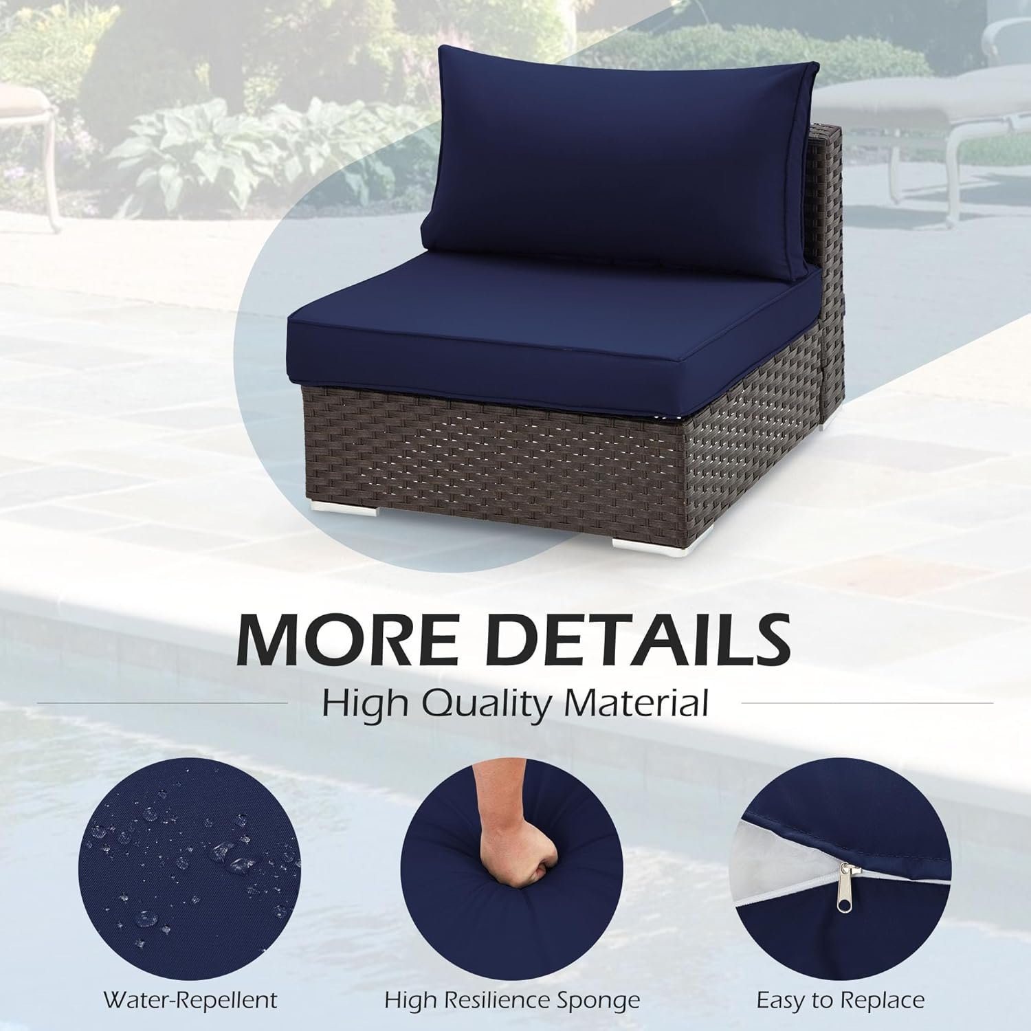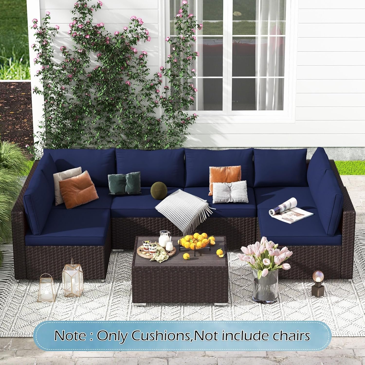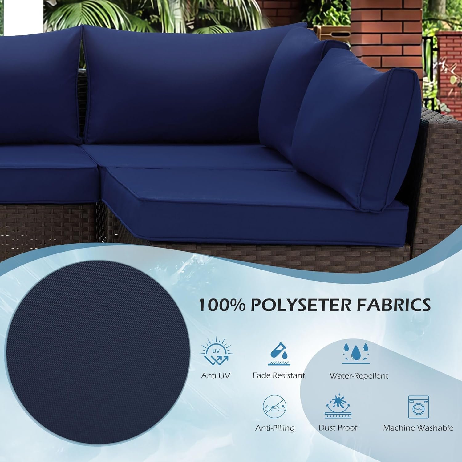 𝐒𝐢𝐳𝐞 𝐂𝐡𝐞𝐜𝐤: 𝐌𝐞𝐚𝐬𝐮𝐫𝐞 𝐲𝐨𝐮𝐫 𝐨𝐮𝐭𝐝𝐨𝐨𝐫 𝐟𝐮𝐫𝐧𝐢𝐭𝐮𝐫𝐞 𝐛𝐞𝐟𝐨𝐫𝐞 𝐨𝐫𝐝𝐞𝐫𝐢𝐧𝐠 𝐭𝐨 𝐞𝐧𝐬𝐮𝐫𝐞 𝐚 𝐩𝐫𝐨𝐩𝐞𝐫 𝐟𝐢𝐭 𝐰𝐢𝐭𝐡 𝐨𝐮𝐫 𝐜𝐮𝐬𝐡𝐢𝐨𝐧 𝐝𝐢𝐦𝐞𝐧𝐬𝐢𝐨𝐧𝐬; our outdoor sofa cushions are vacuum-packed, once opened, the cushion cannot be returned to their original packaging;The complete sectional set includes 6 seat cushions (25.4″L x 25.4″W x 4″H); 6 standard backrests (25.4″L x 12.3″W); 2 corner backrests (17.6″L x 12.3″W)