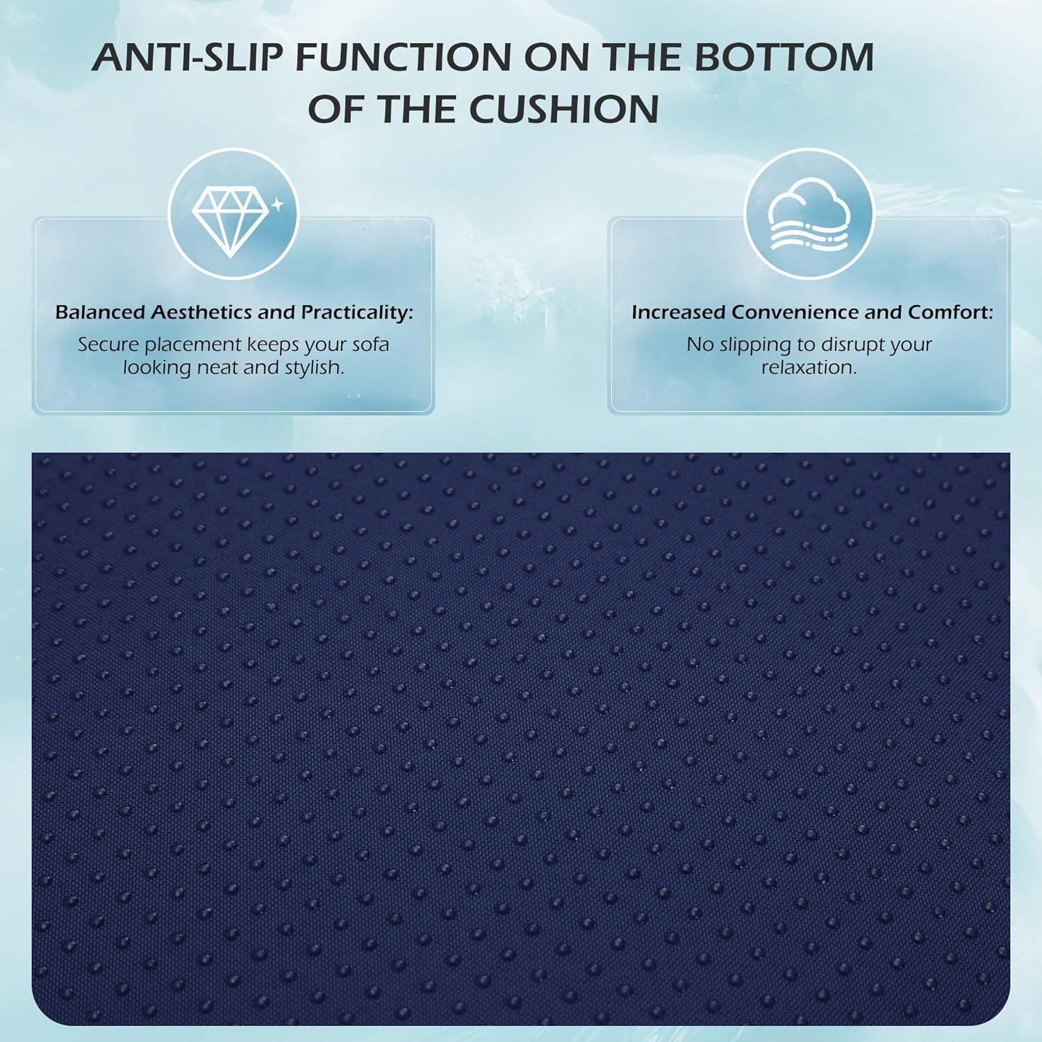 Non-Slip Design and Easy Maintenance: The back of the sofa cushions is designed with dense anti-slip particles to prevent shifting; the cushion covers feature explosion-proof zippers, making them easy to remove for cleaning or replacement; simply toss the covers into the washing machine for effortless daily maintenance