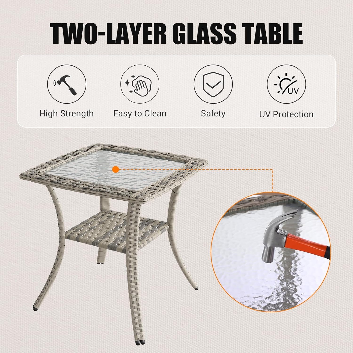 Easy Assembly & Clean: This rattan set is designed for hassle-free setup and upkeep. The modular pieces assemble quickly, and the rattan material is easy to clean—just wipe with a damp cloth. The fire pit table is compatible with standard propane tanks (not included) for convenient use