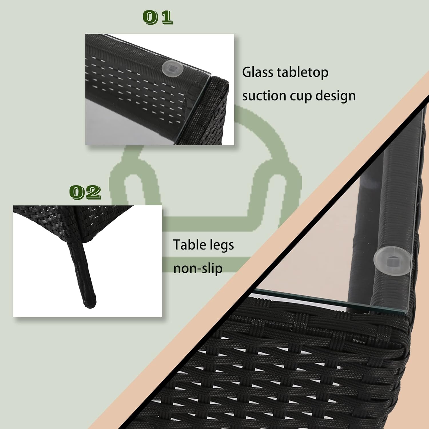 Multifunctional Coffee Table: Each outdoor furniture set is equipped with a central coffee table with shatter-resistant tempered glass, which is used to display decorations, place food and drinks, etc.