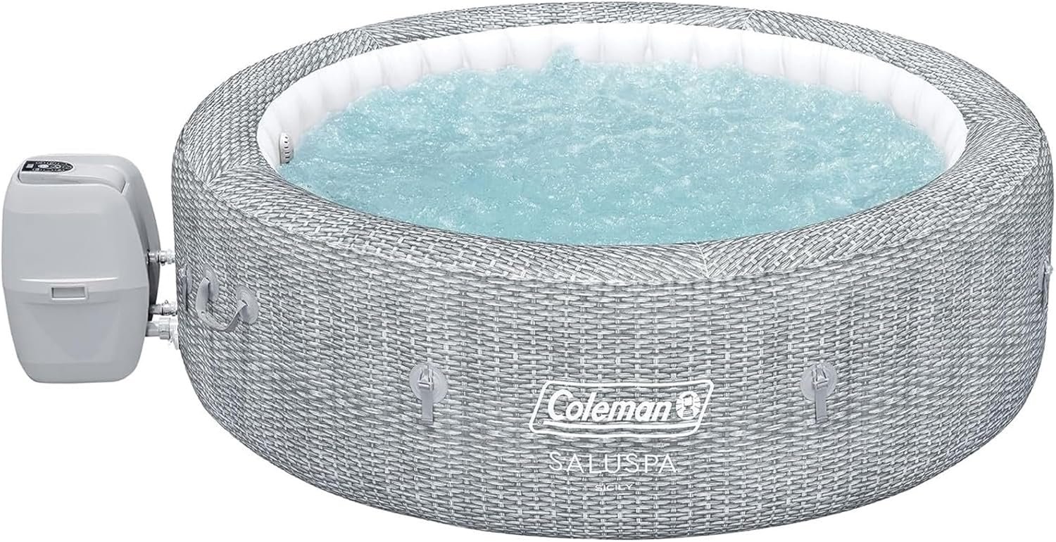 Coleman Airjet Hot Tub: The Coleman Sicily AirJet hot tub provides a soothing massage experience with 180 bubbling warm jets for up to 7 people; Spa reaches up to 104 degrees F for ultimate relaxation
