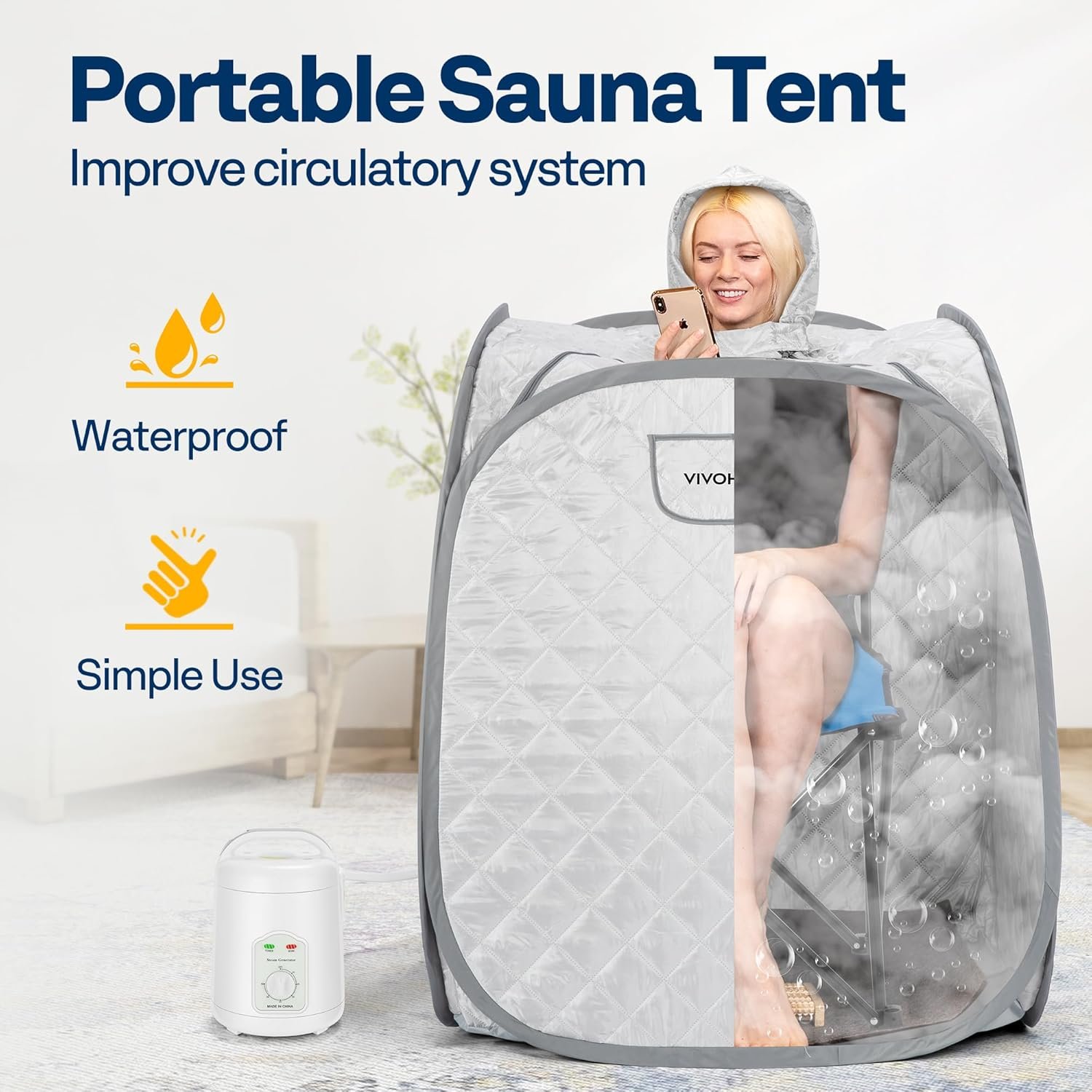 USE ANYTIME & ANYWHERE – No need to worry about sharing a crowded sauna steam room with others, VIVOHOME steam sauna helps you to create a wonderful and personal spa experience any time you like; The portable design allows you to carry the steamer in the bag, and assemble it indoor, outdoor, or anywhere you want