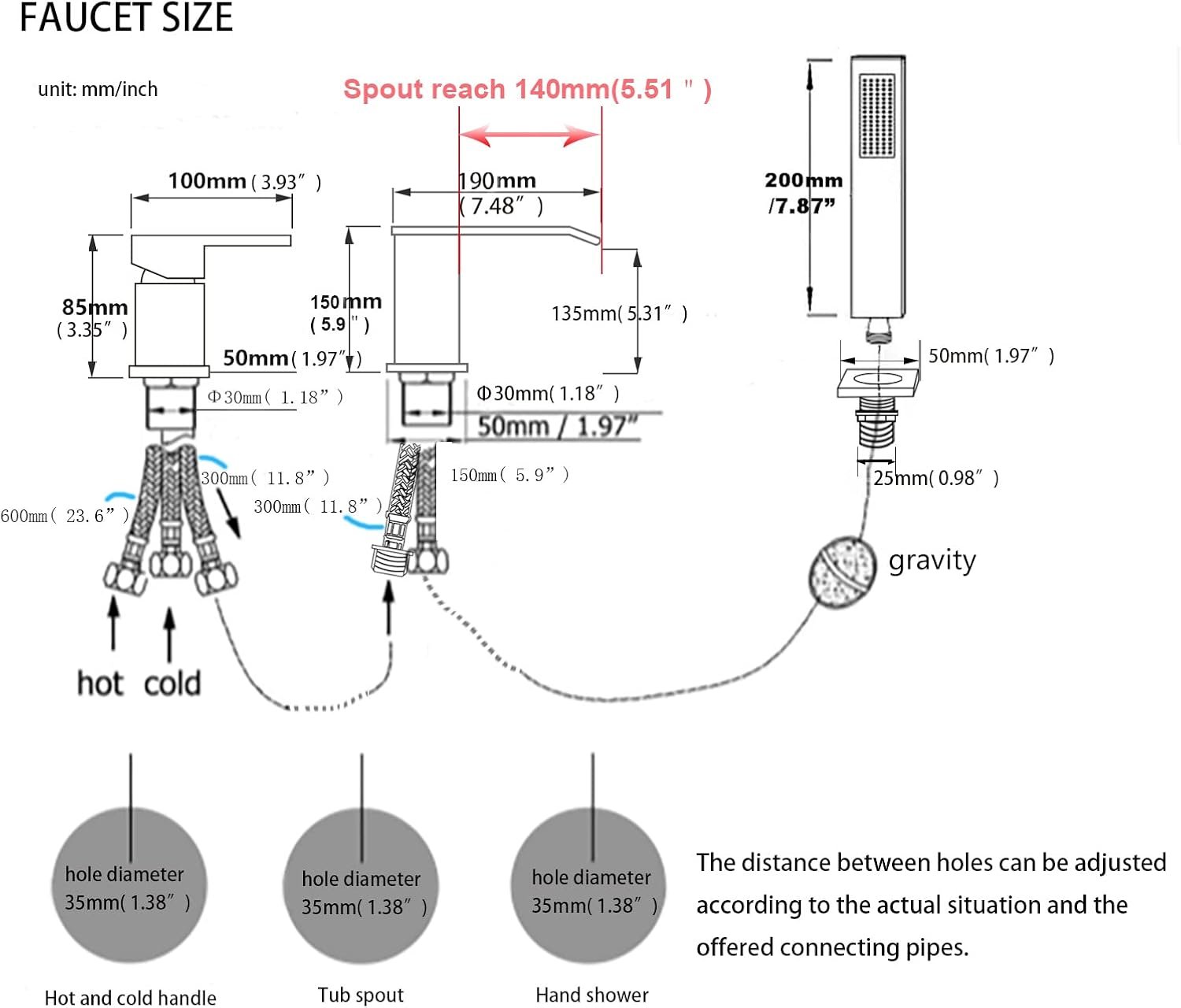Easy Installation: Tub filler deck mount comes with an installation manual, is designed to fit 3-hole, the hole spacing can be adjusted according to the length of the connecting pipes. Easy to install, even for a layman.