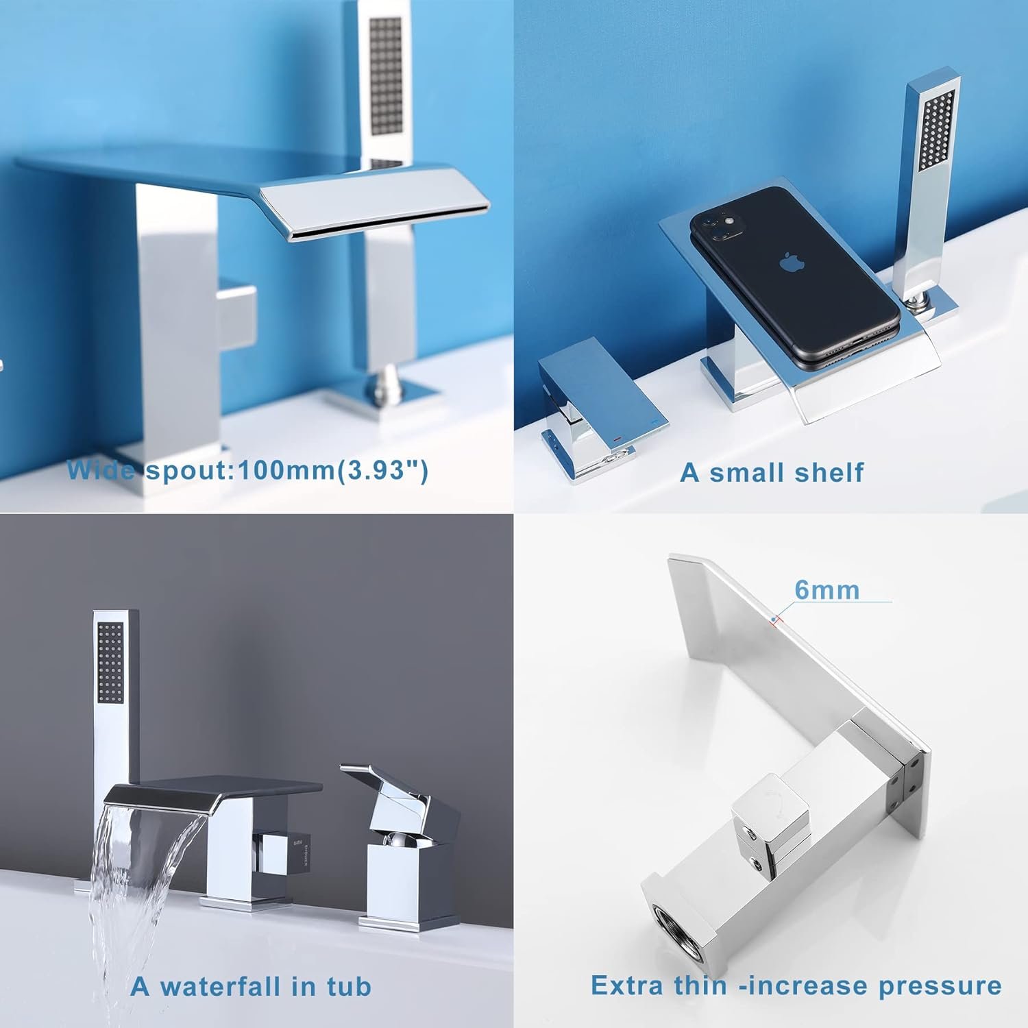 Extra Wide Spout – Wonderful Waterfall: Renovating the master bathroom? Need something that can retrofit existing bathtub? This roman tub faucet is a gorgeous choice. Unique waterfall spout(3.93 inch), it fills tub in no time.