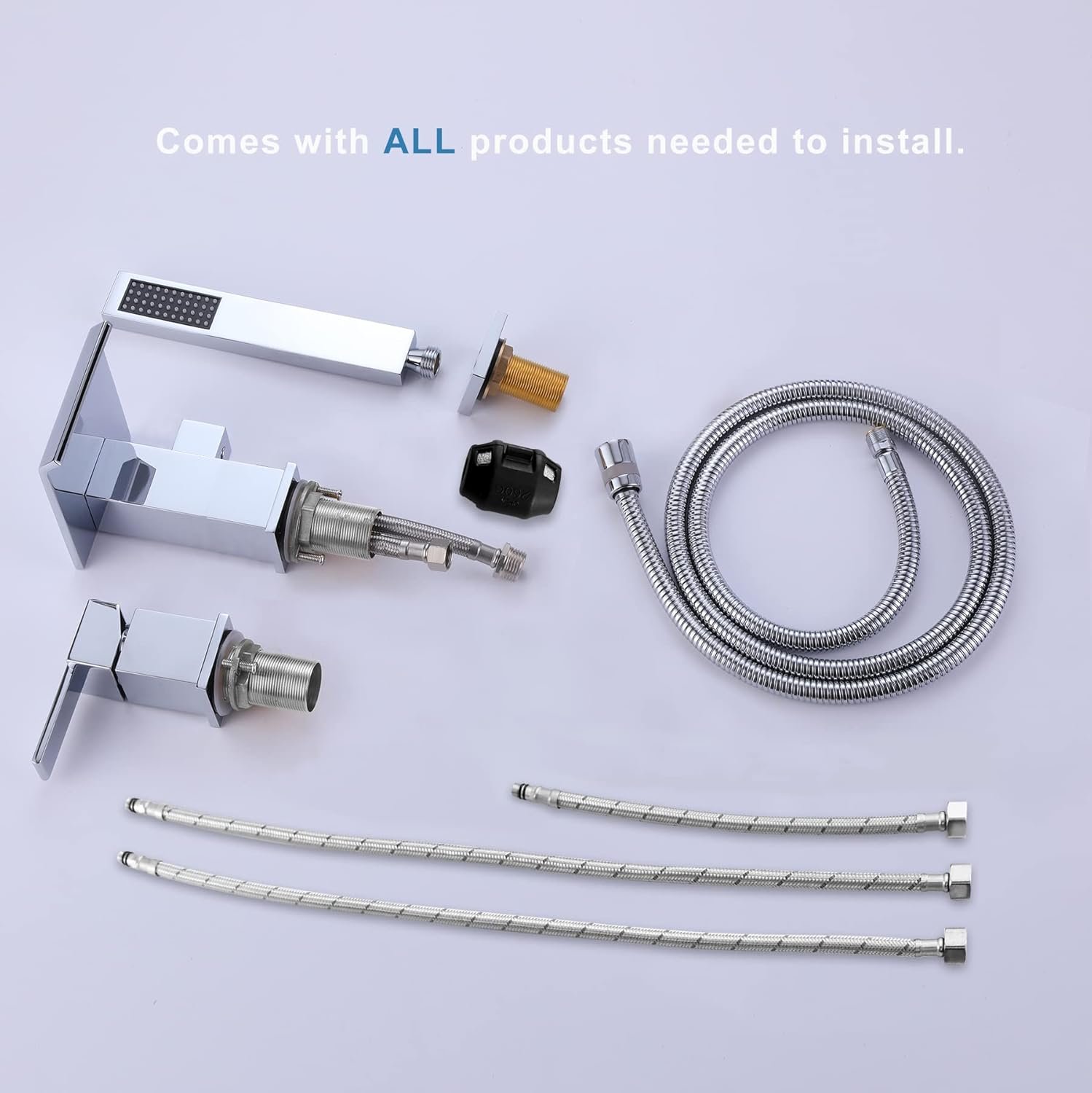 All mounting hardware, hot and cold water lines and 59″(1500mm) shower hose are included.