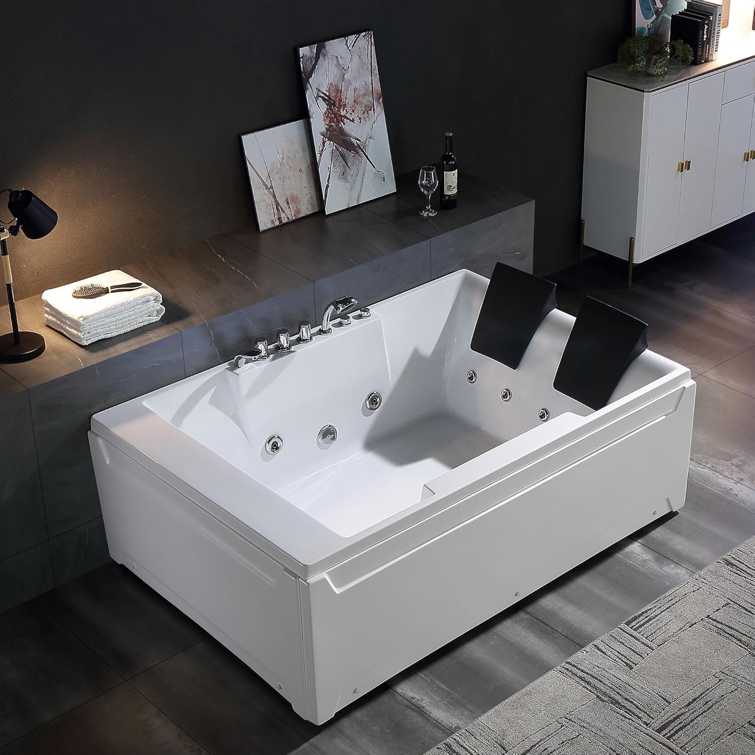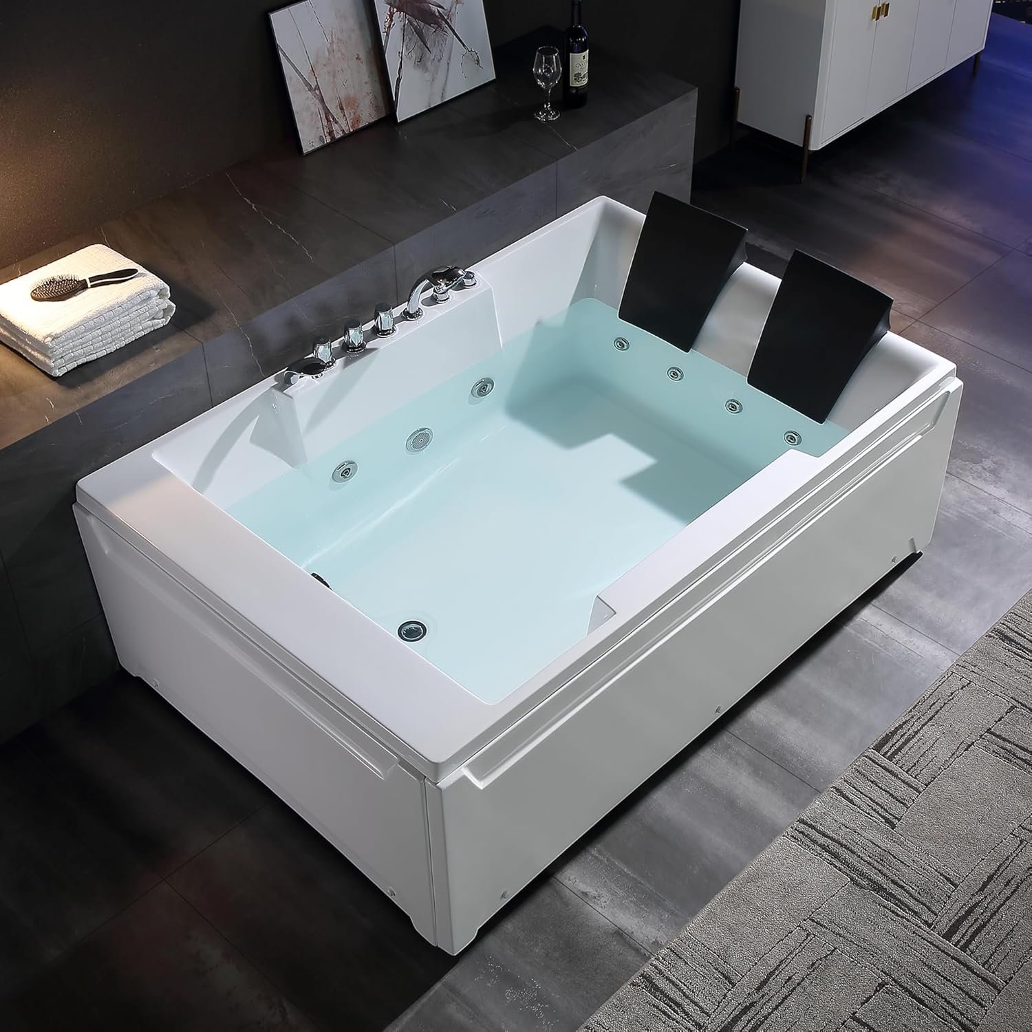 2 Person Whirlpool Tub:The 2 person whirlpool bathtub can create a warm space for couples to connect and recharge whenever they can find a minute together. 2-person spa bathtub helps create a home retreat where you can immerse yourself in warm water and massage to revitalize, slow down to recover, or connect with a loved one to feel closer.