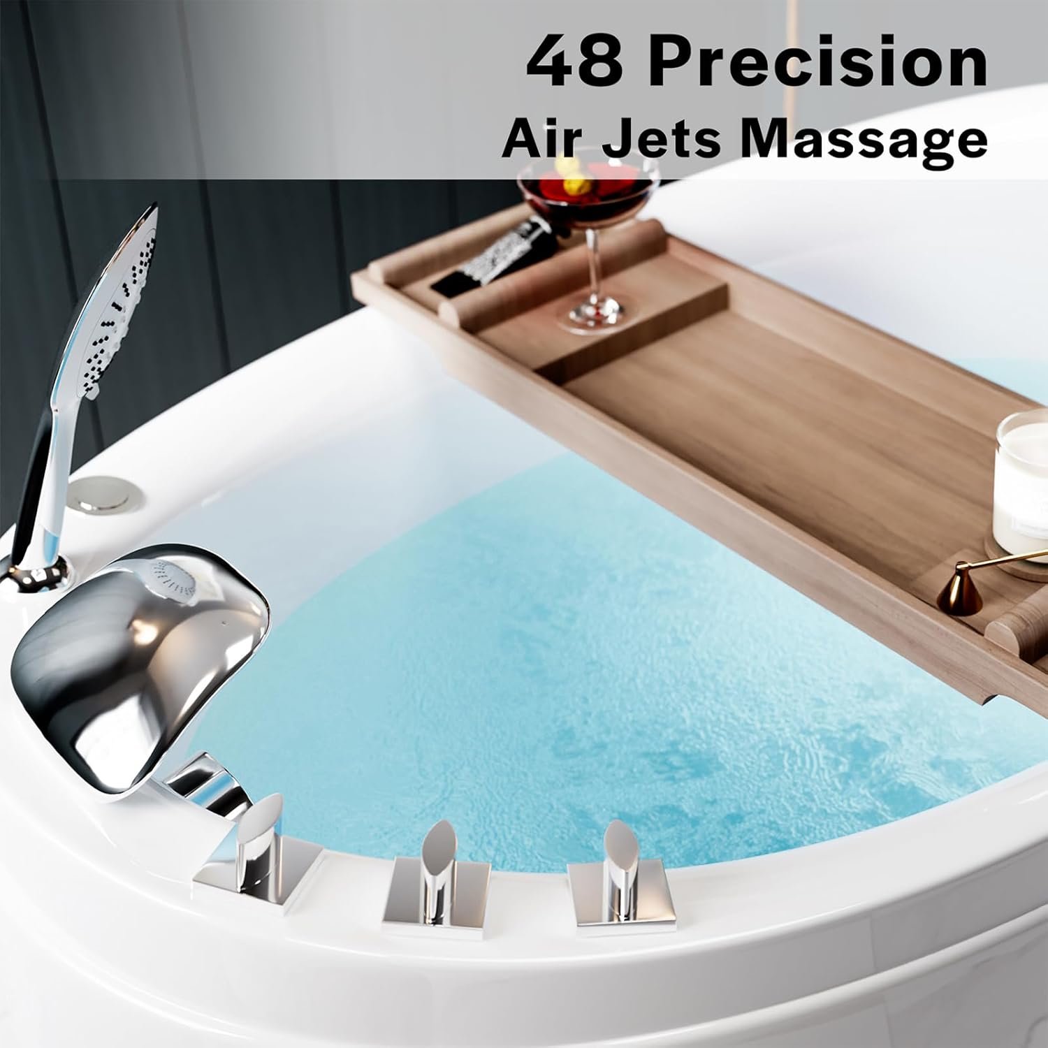 Luxurious Air Jet Massage with 48 Jets:Powered by a 0.5 HP air pump, the bathtub features 48 precision air pinhole jets that create thousands of soothing warm bubbles, delivering a gentle full-body massage for a spa-like experience at home