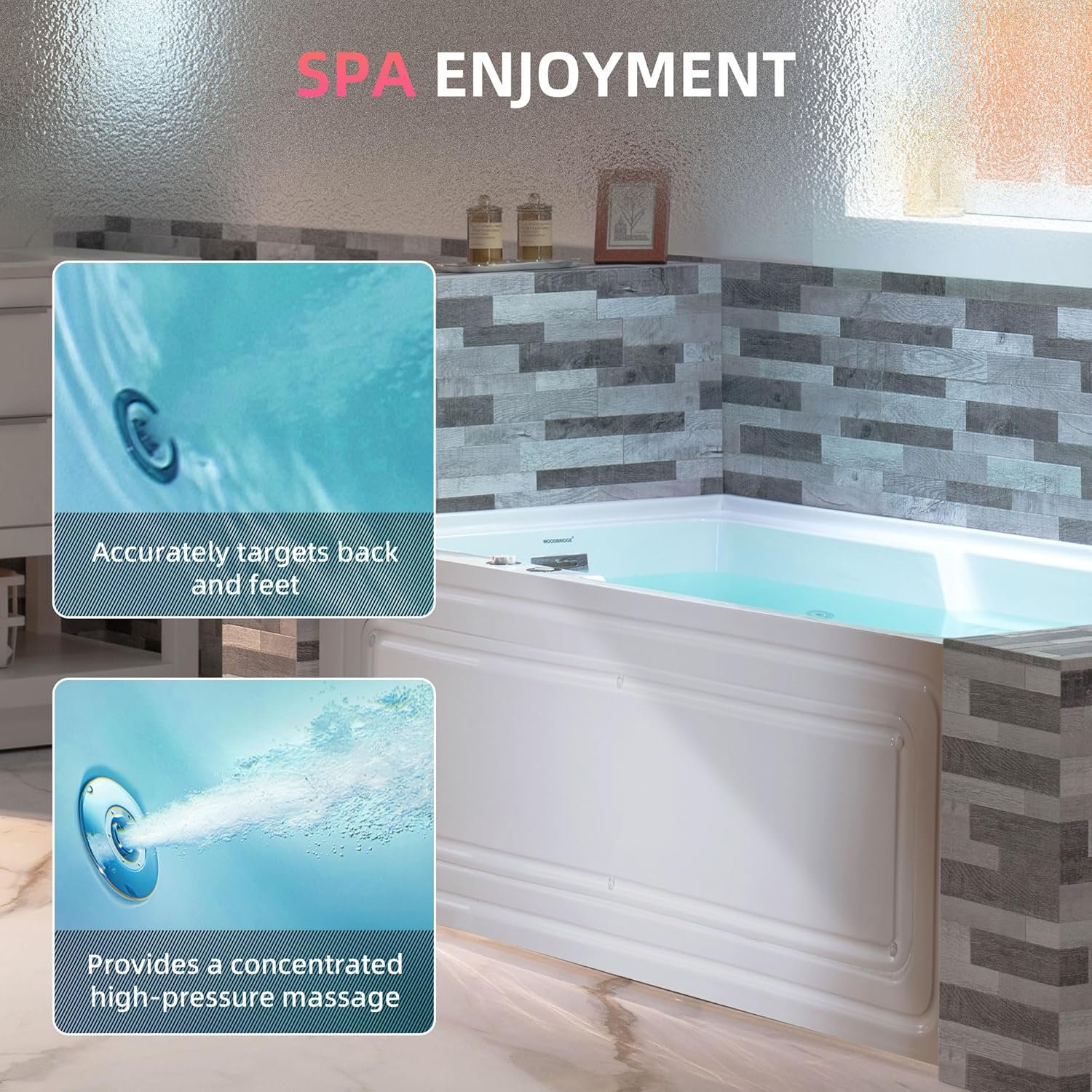 ✅ [WATER JETS] The Whirlpool tub has 3 small jets in foot zone, 6 jets in body zone. Tuning the jets nozzle can adjust the flow rate and the angle of inflow.