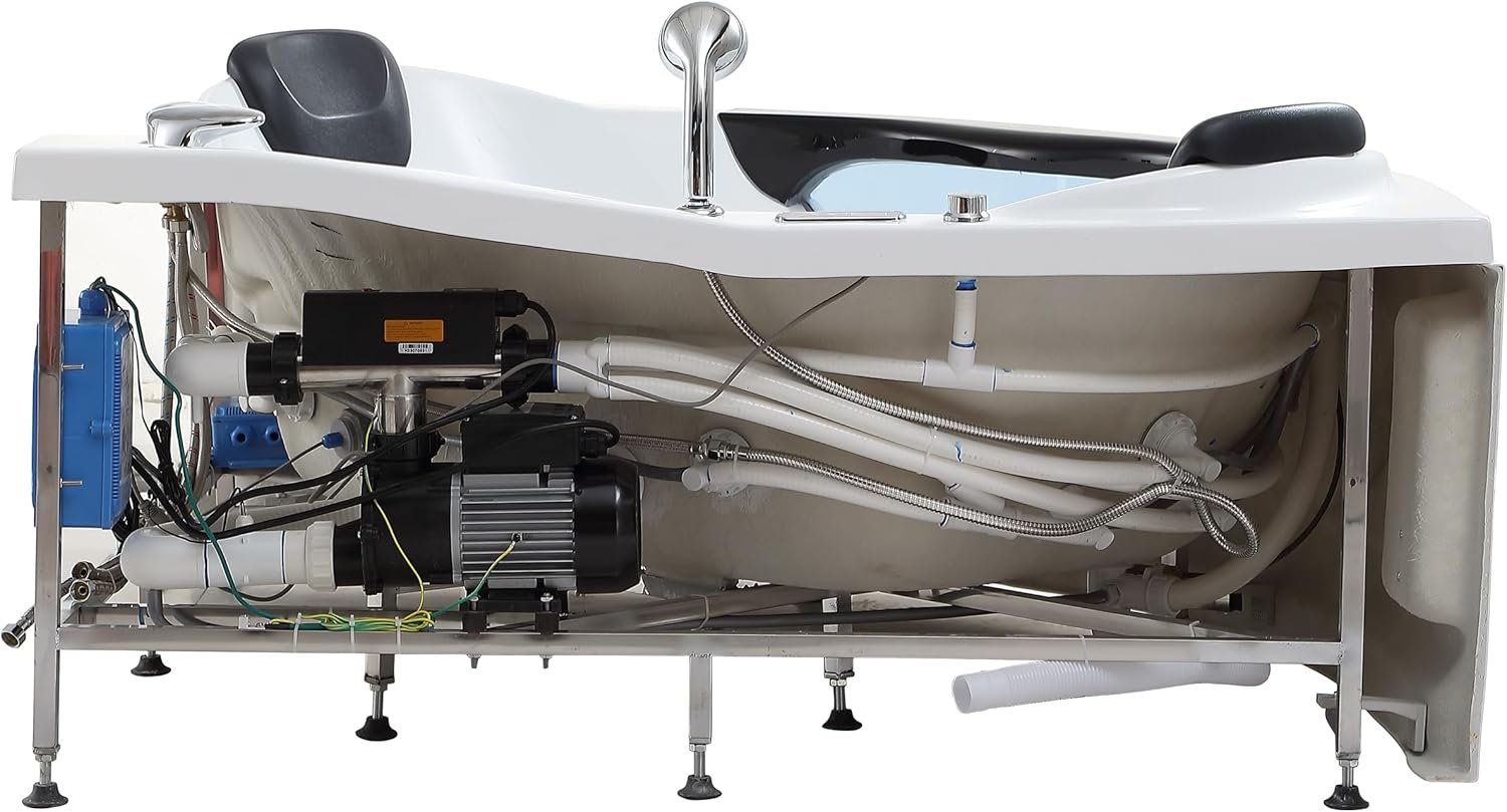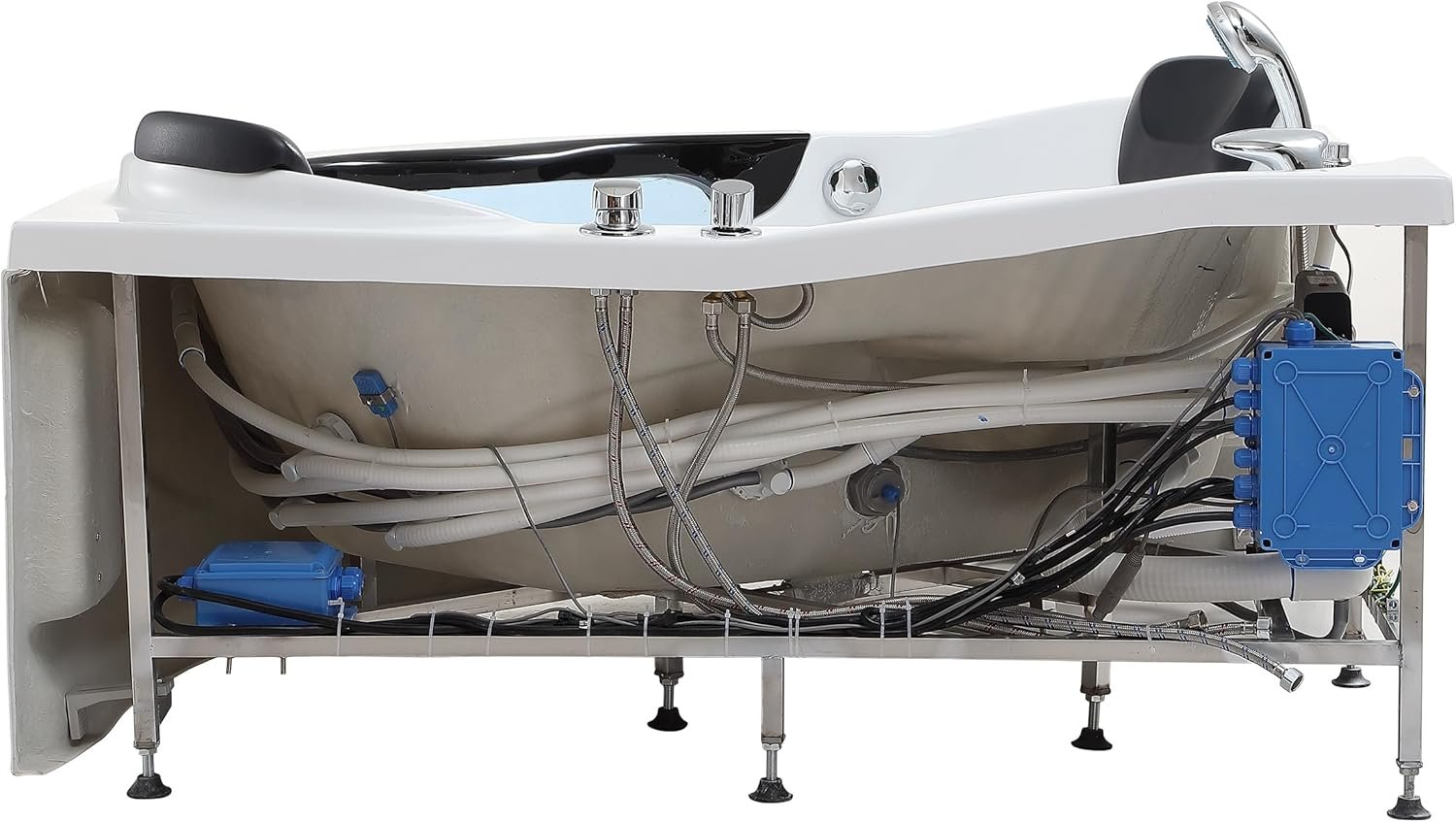 High Quality Jetted Tub: Made from 100% acrylic and reinforced with fiberglass resin, this bathtub ensures long-lasting durability. The bottom is supported by a 304 stainless steel frame, providing robust structural integrity and weight support.